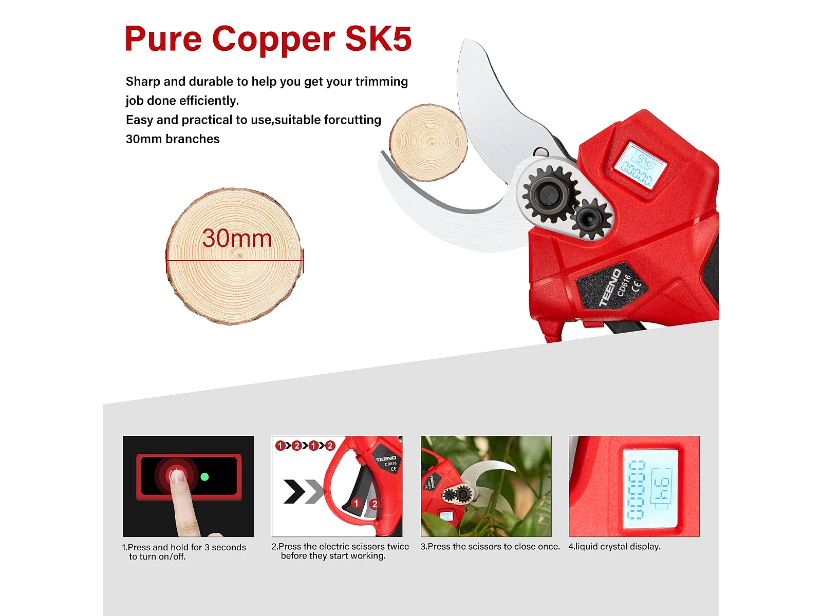 Sécateur électrique sur fil brushless 30mm avec LCD, 2 * 2000mAh Batteries