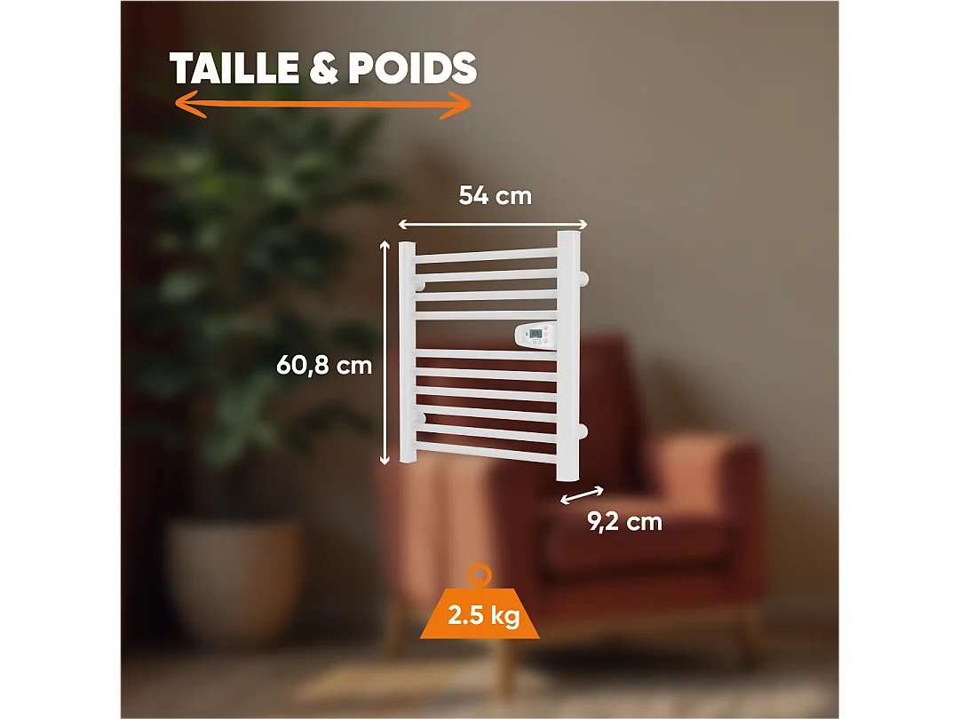 Iron EM Design Radiateur sèche-serviettes électrique 1200W, 600 x 1400 mm, blanc