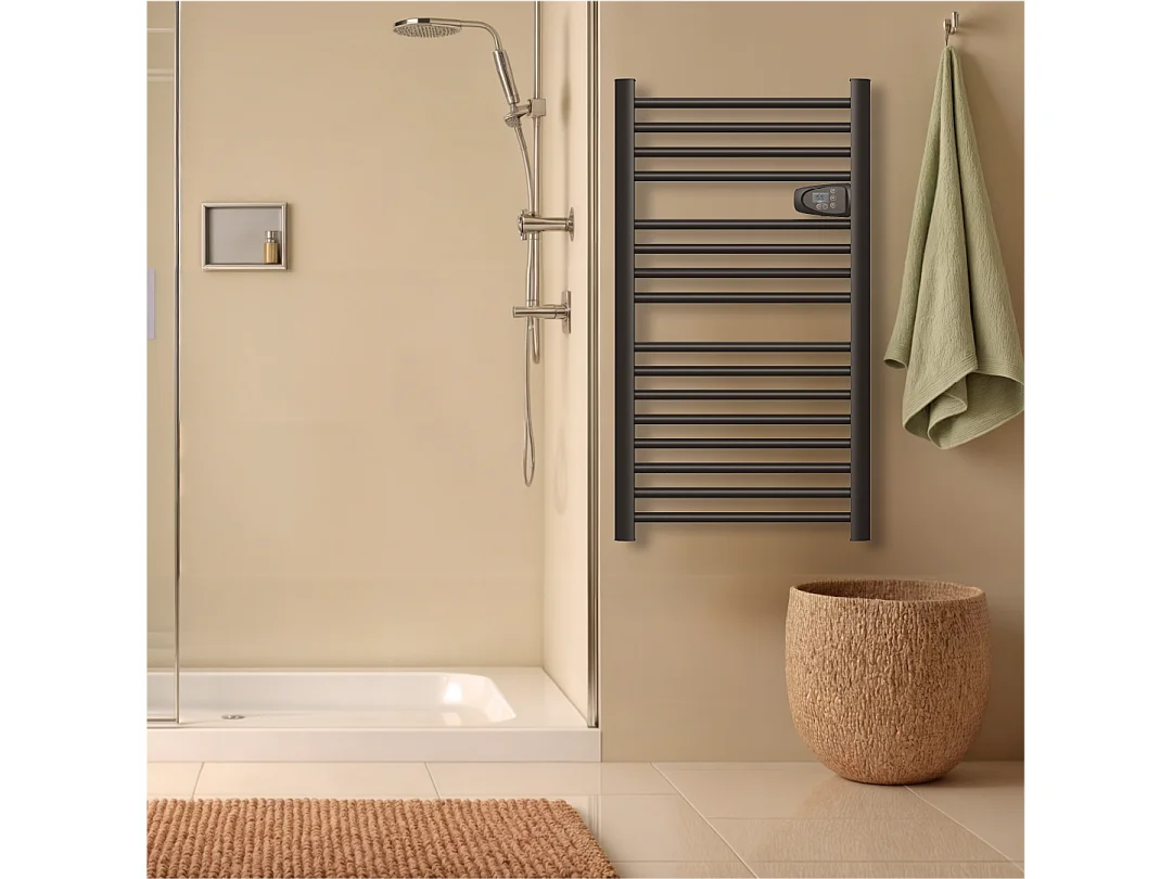 EMKE Sèche-serviette électrique Aluminium Commande tactile Température réglable - 960 x 540 mm Noir 500W
