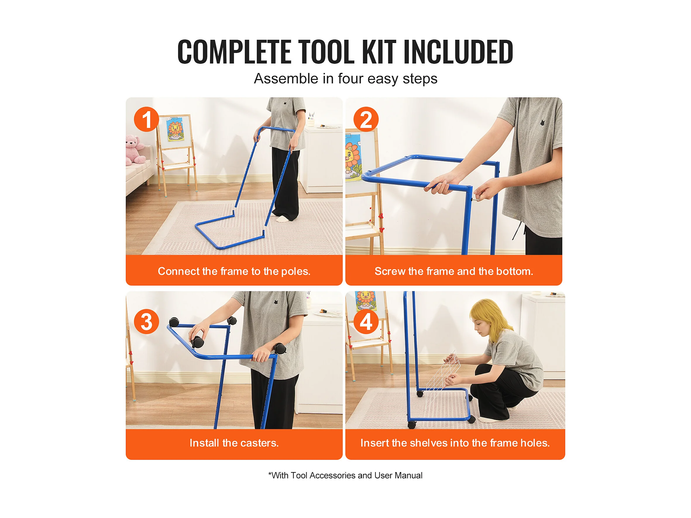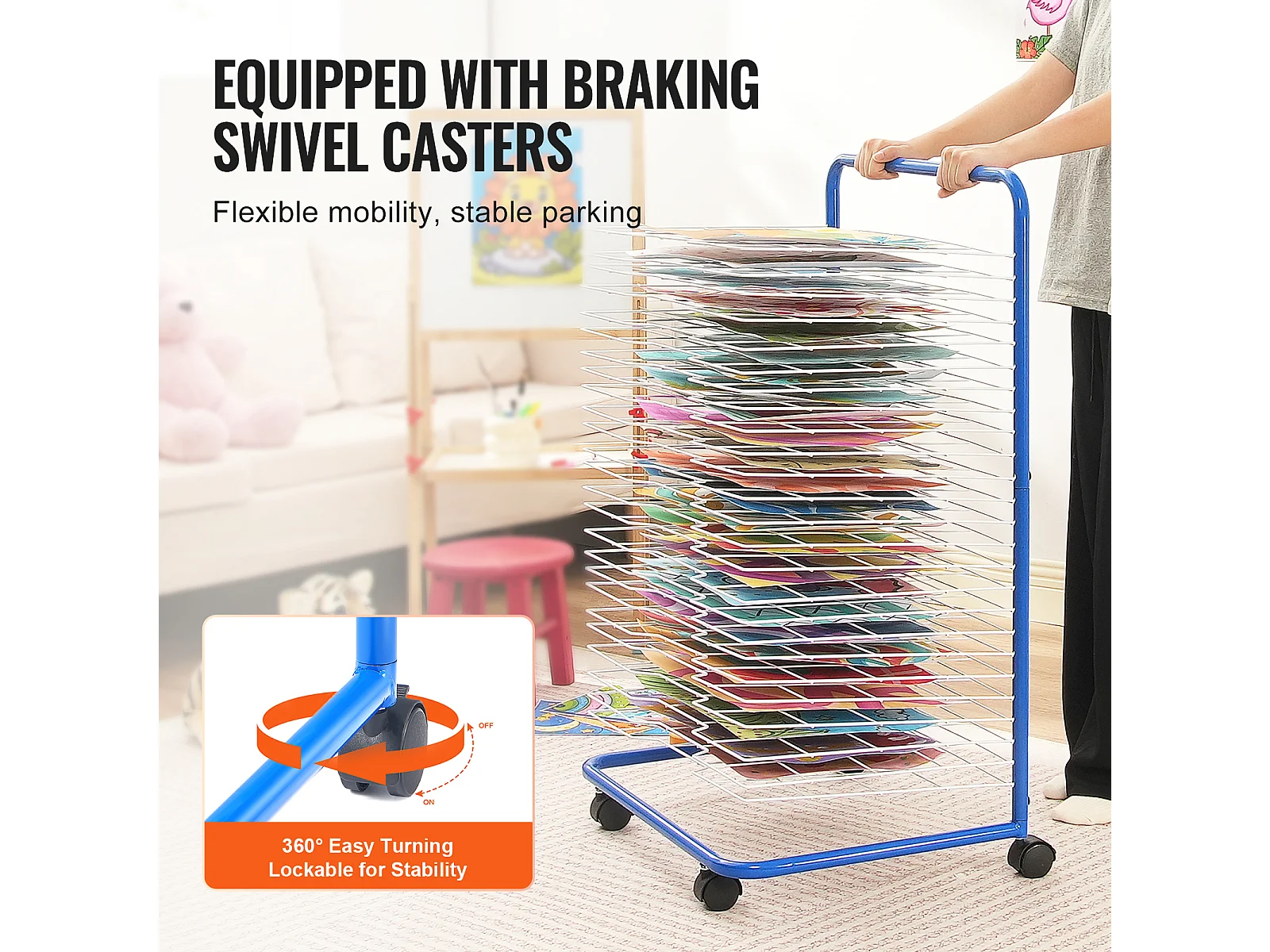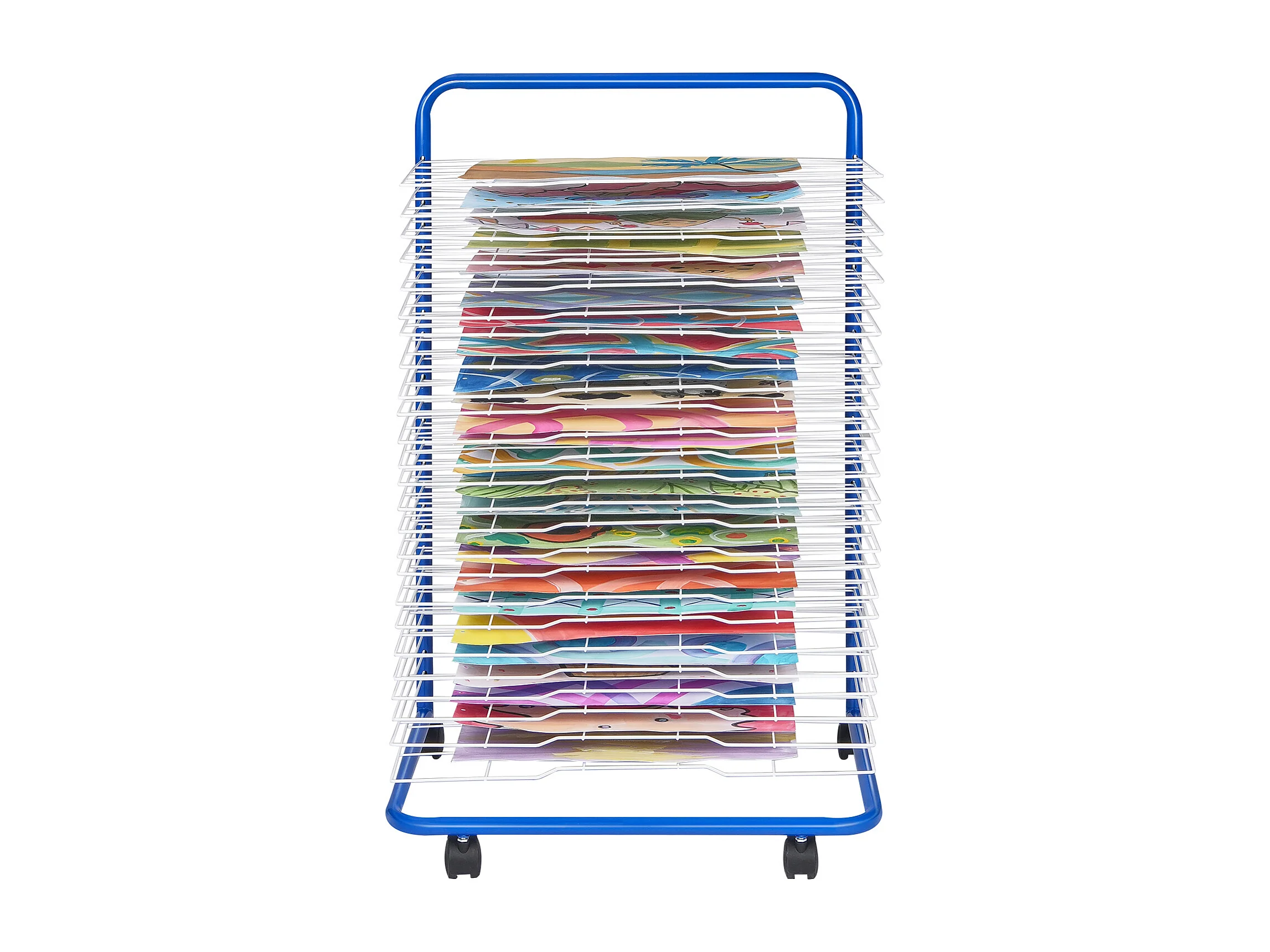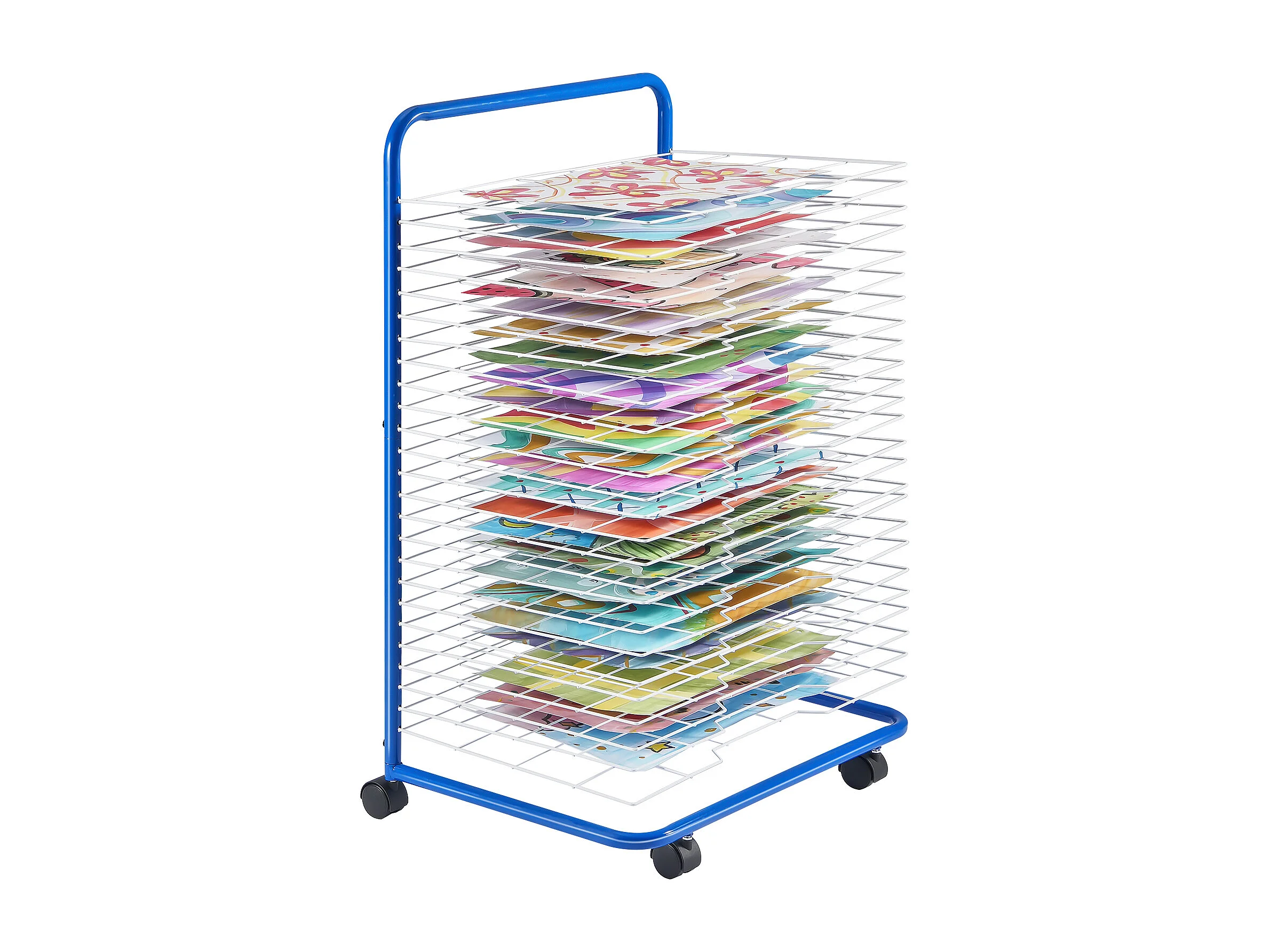 Séchoir à Art SucceBuy 25 Étagères Amovibles 4 Roues, Roues Verrouillables, Acier au Carbone pour Œuvres d'Art, Bleu + Blanc