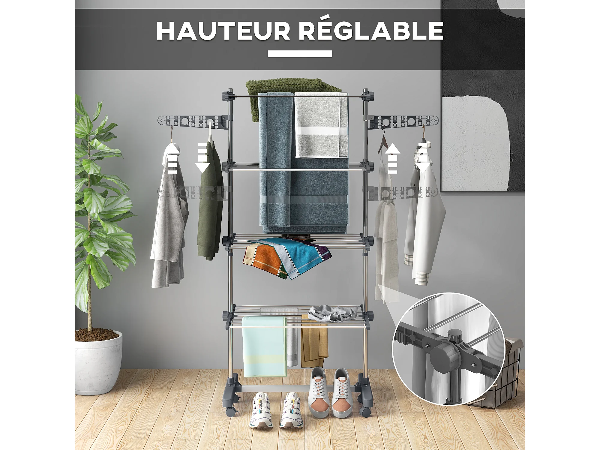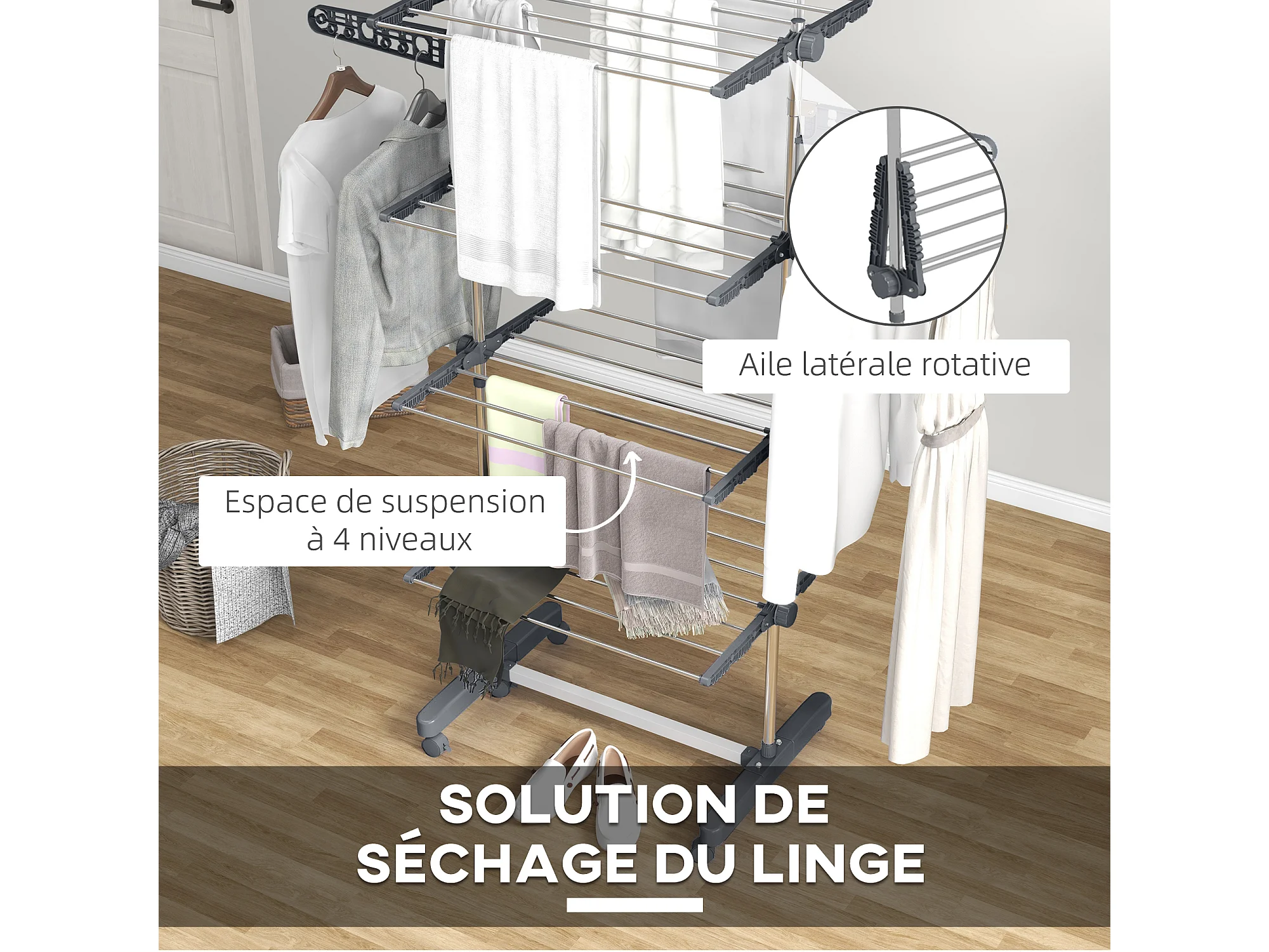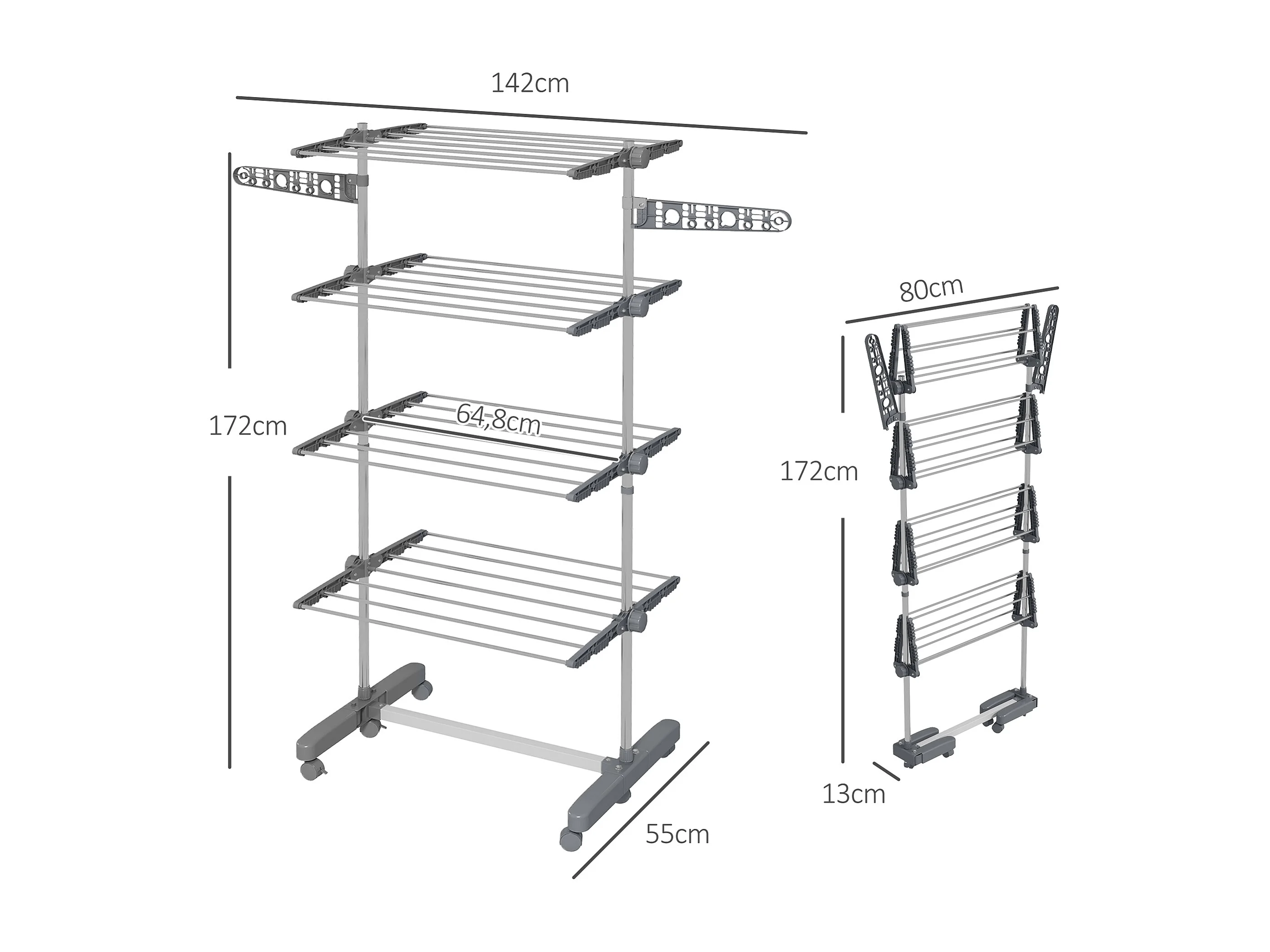 Séchoir à linge étendoir pliable ailes latérales 4 niveaux gris