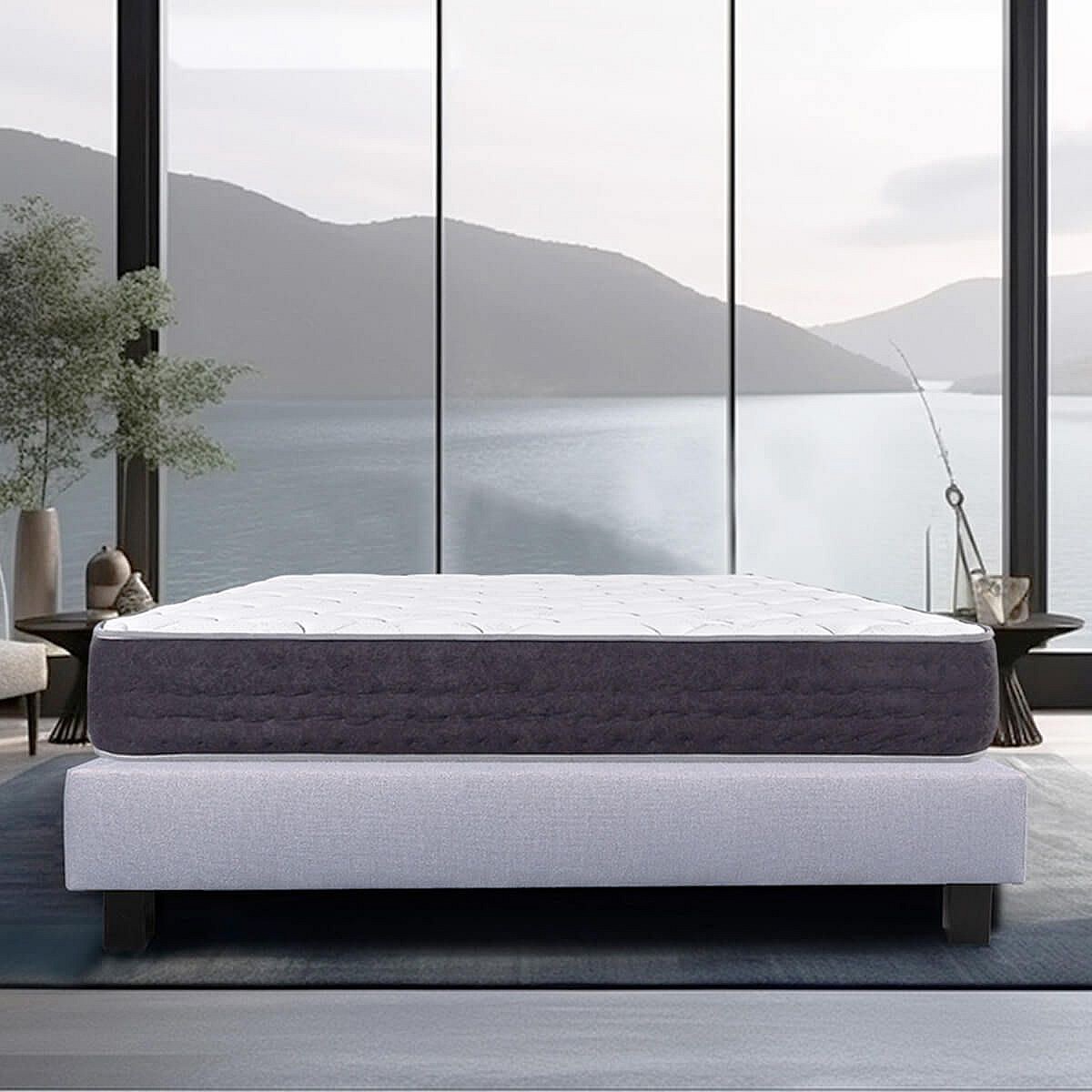 SELIAN - Ensemble Matelas Ressorts Ep.27cm + Sommier Tapissier Gris 160x200 cm