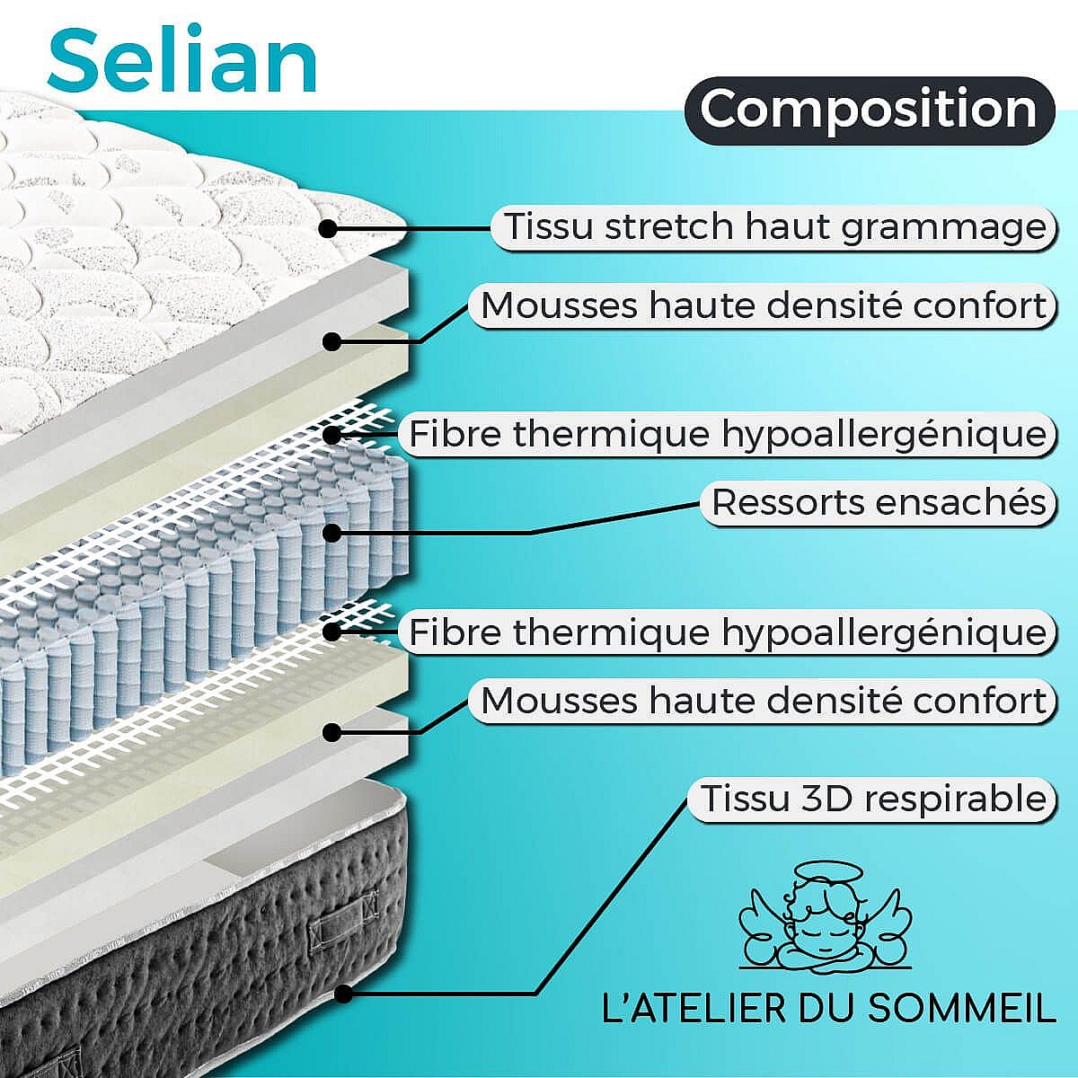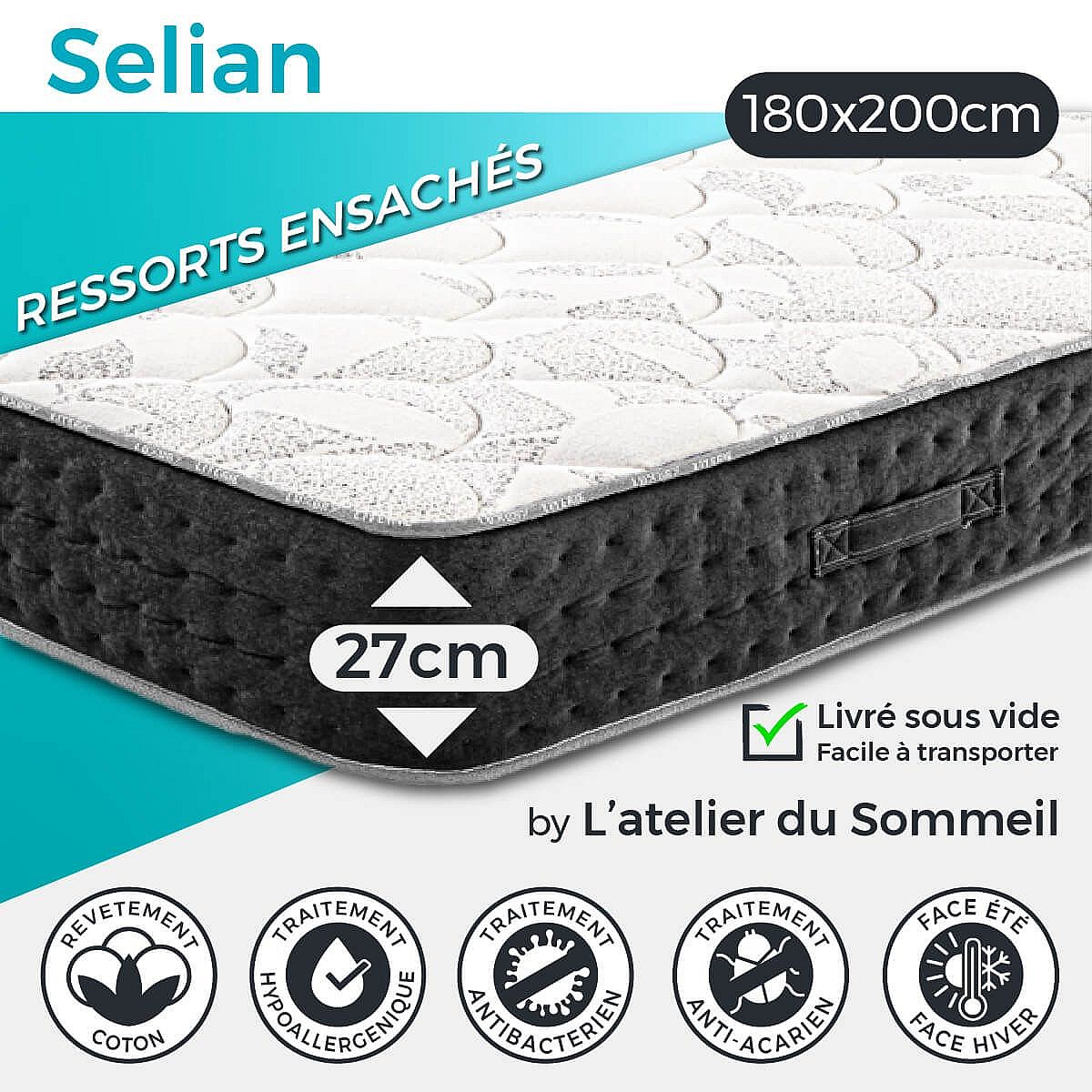 SELIAN - Matelas 180x200 cm Ressorts ensachés Soutien très ferme Ep.27cm