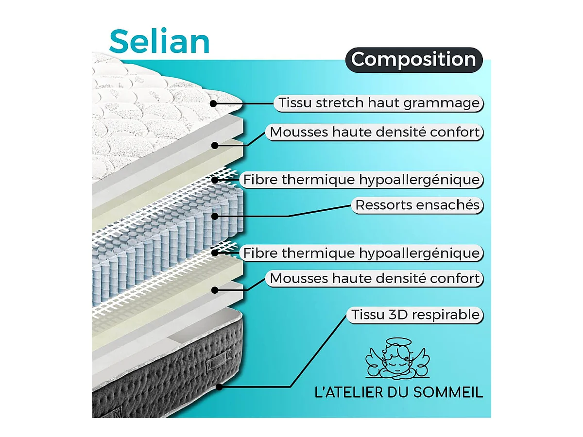 SELIAN - Pack Matelas + Sommier Tapissier Beige 140x190 cm + 2 Oreillers + 1 Couette