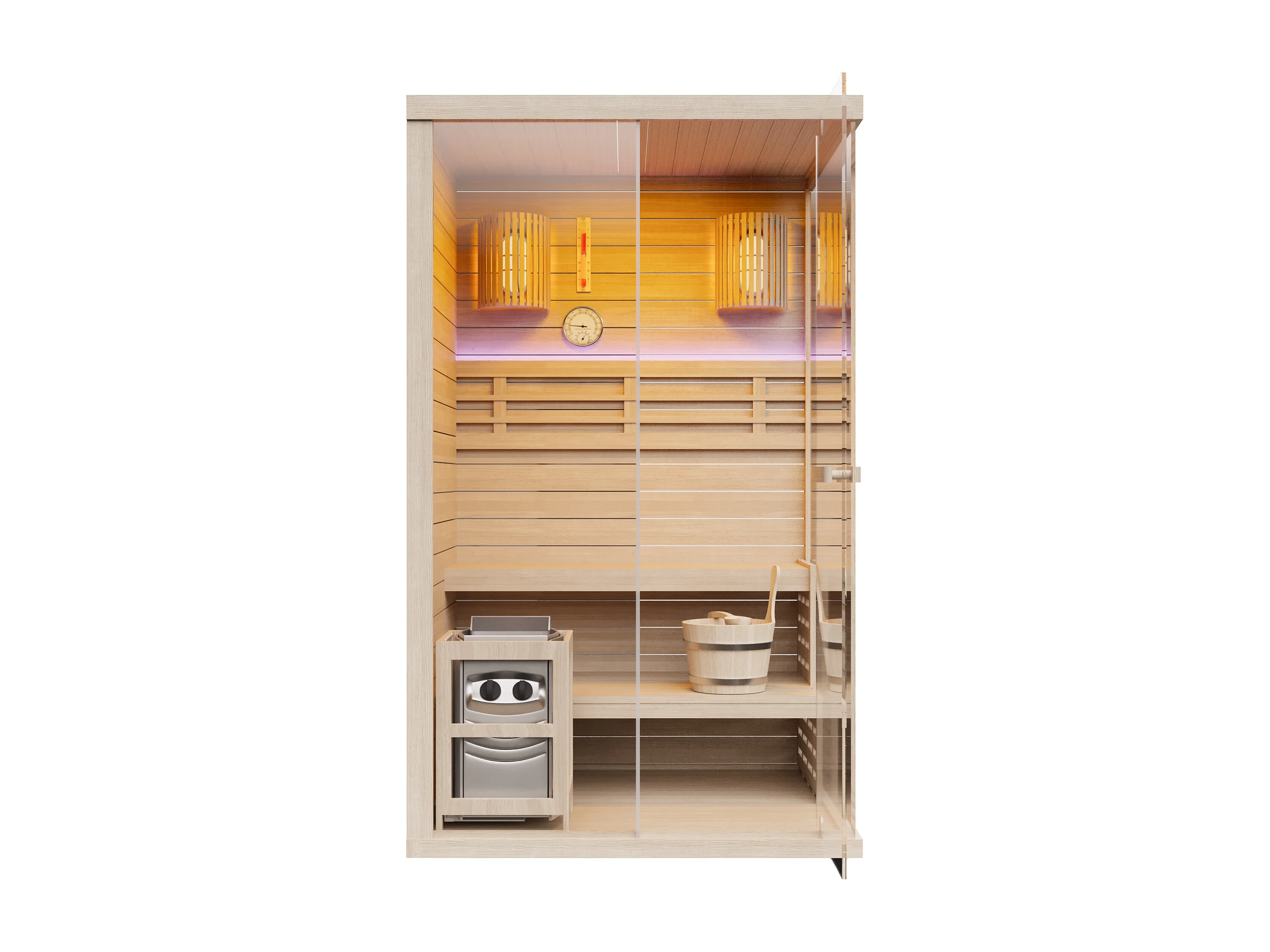 Sauna finlandais vitré à leds avec poêle 3,5KW - 1/2 places - L120 x P120 x H200 cm - SELKI
