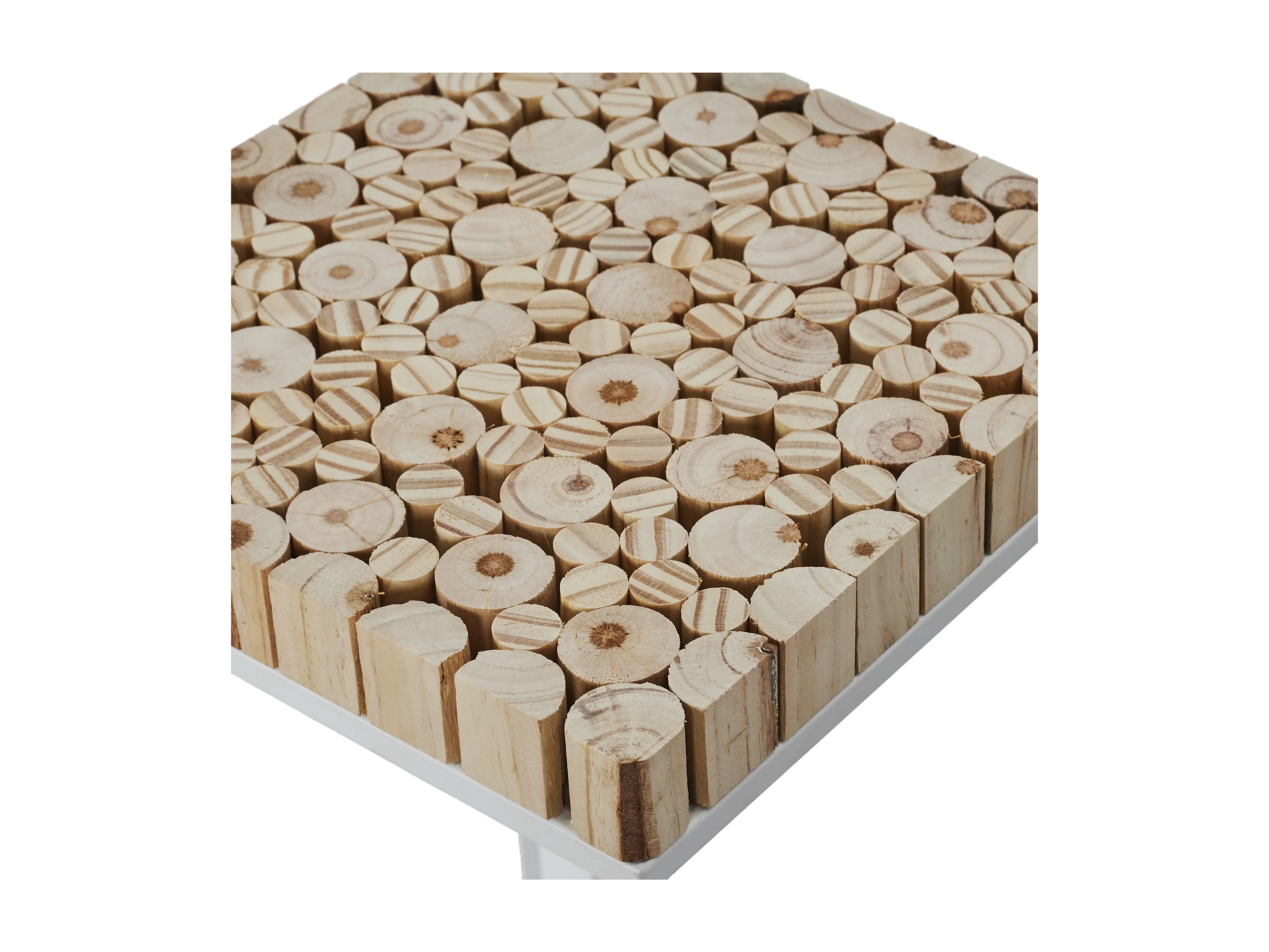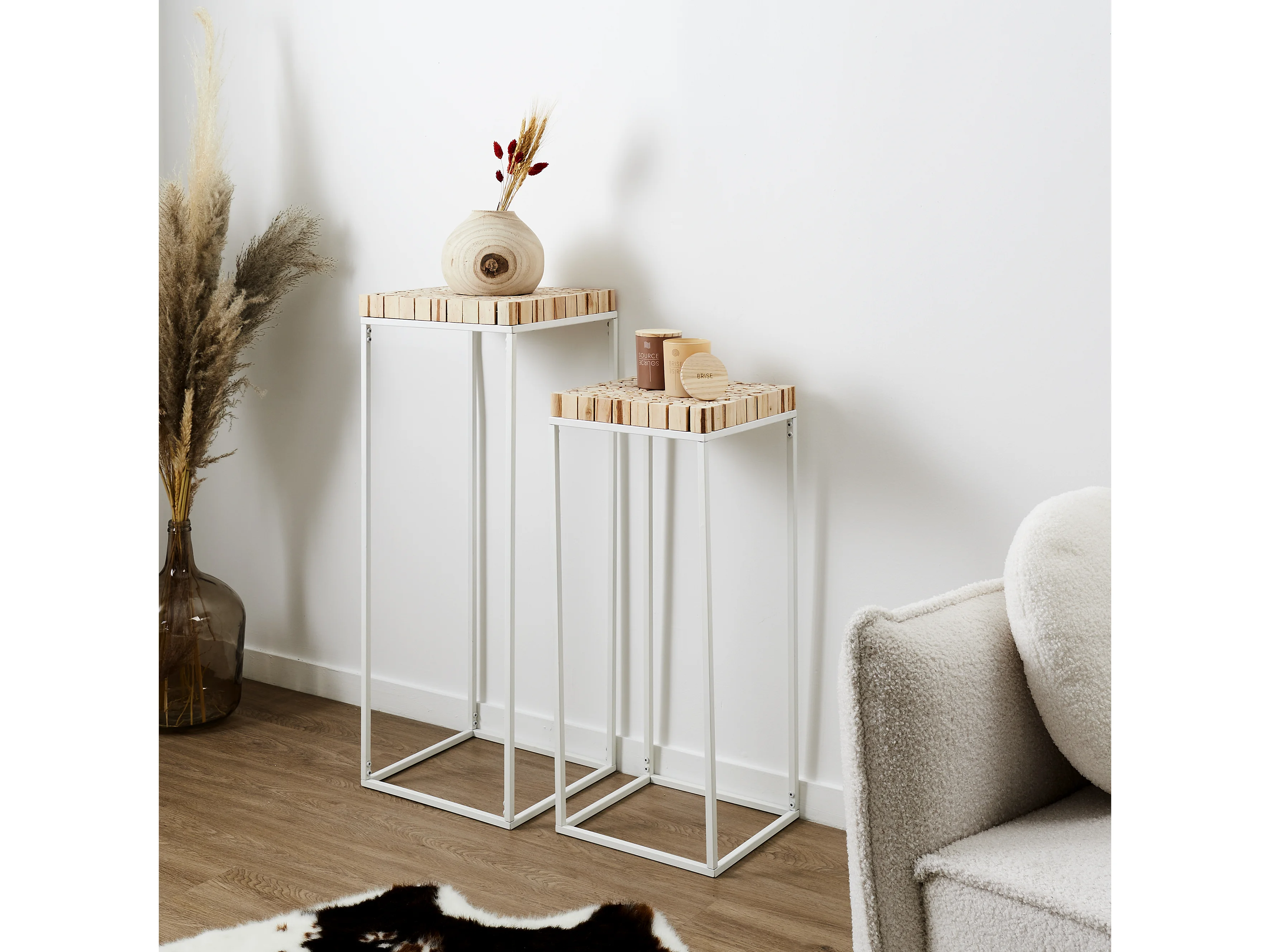 Set de 2 sellettes gigognes effet rondin de bois en bois et métal - Blanc et marron