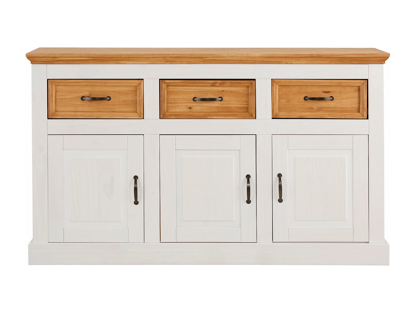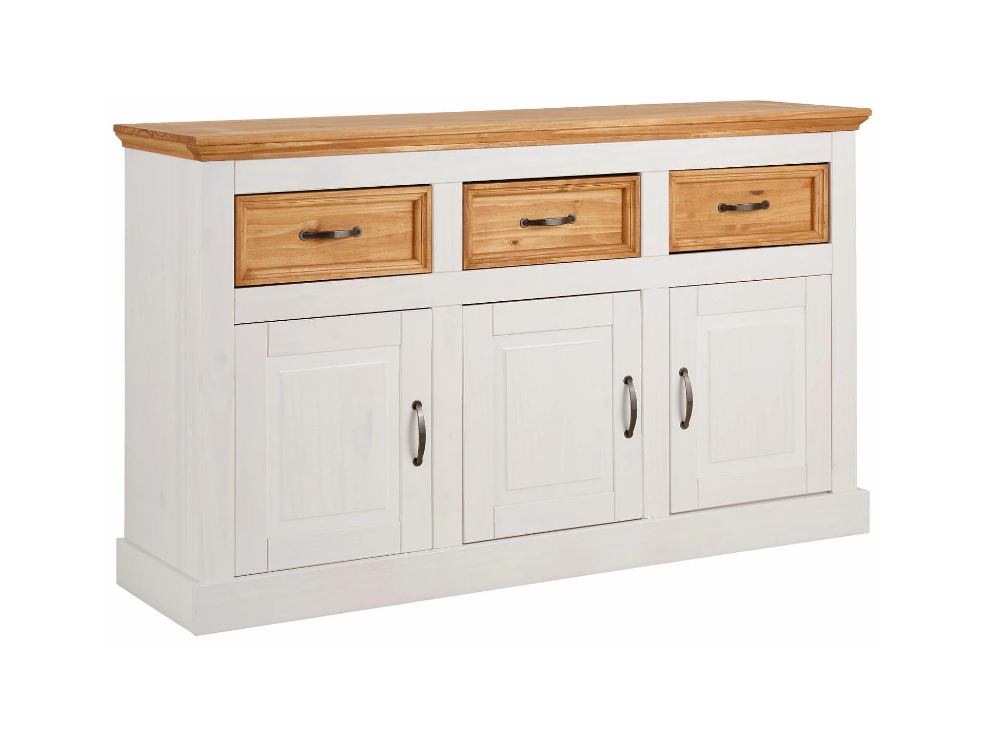 Selma|Buffet avec 3 portes et 3 tiroirs en effet pin teinté blanc