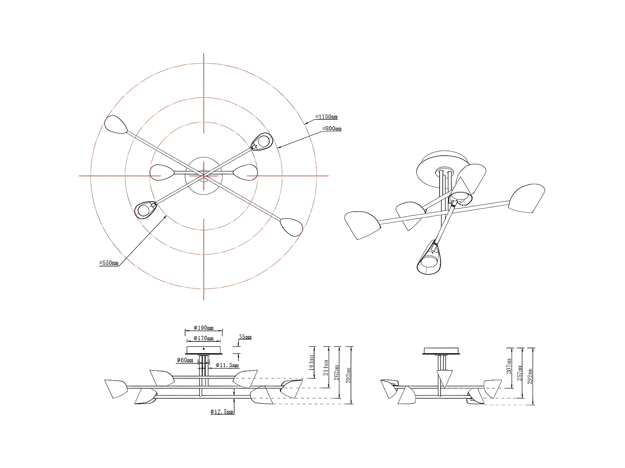 Semi-plafond CAPUCCINA led noir 44.5w MANTRA