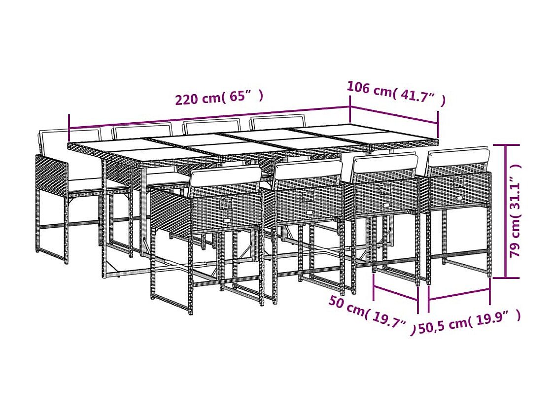 Sener Ensemble à manger de jardin 9 pcs coussins gris résine tressée