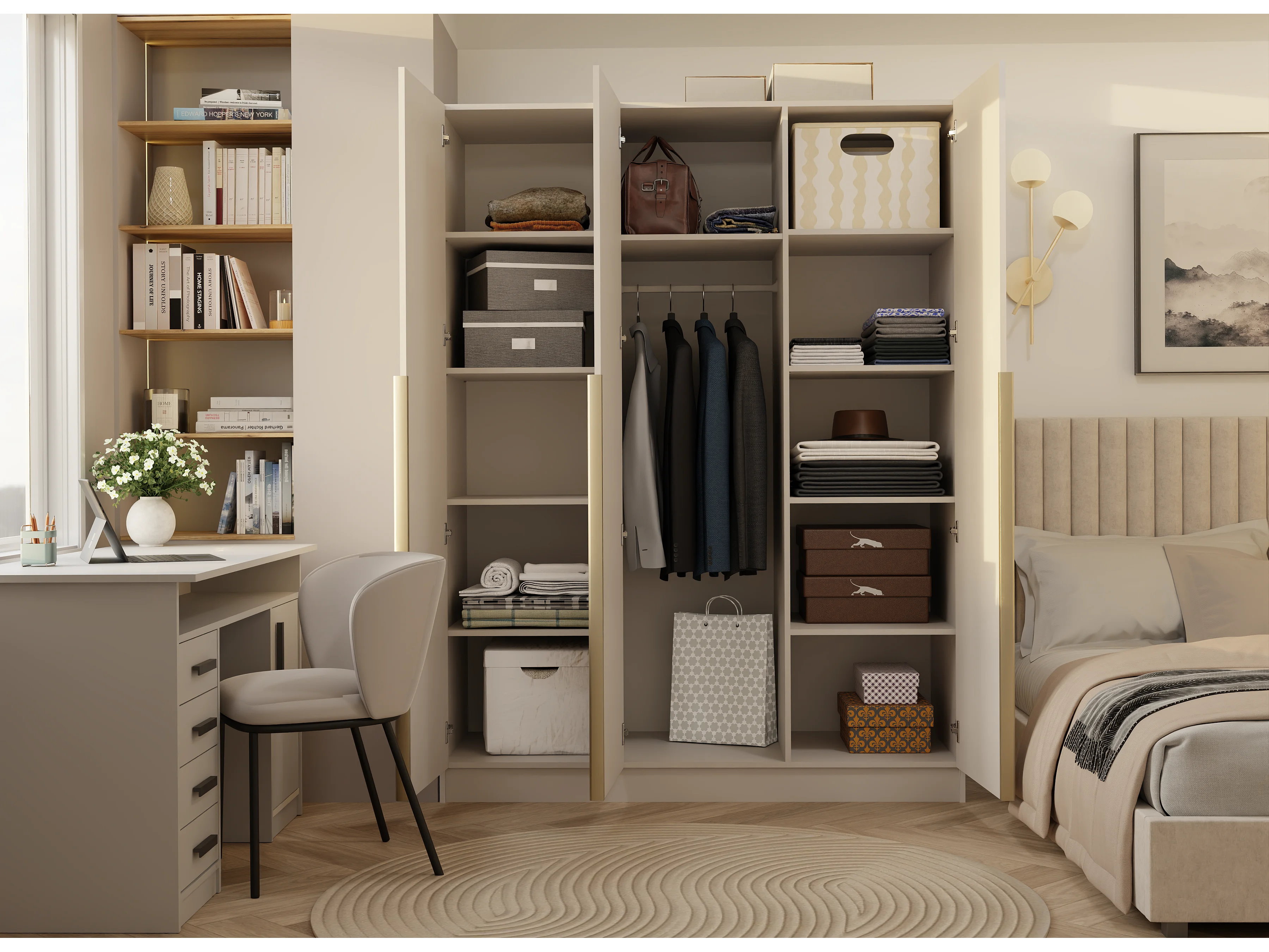 SENSO - Armoire beige cachemire – 3 portes – 150 cm – Poignées dorées – Pour chambre/pièce