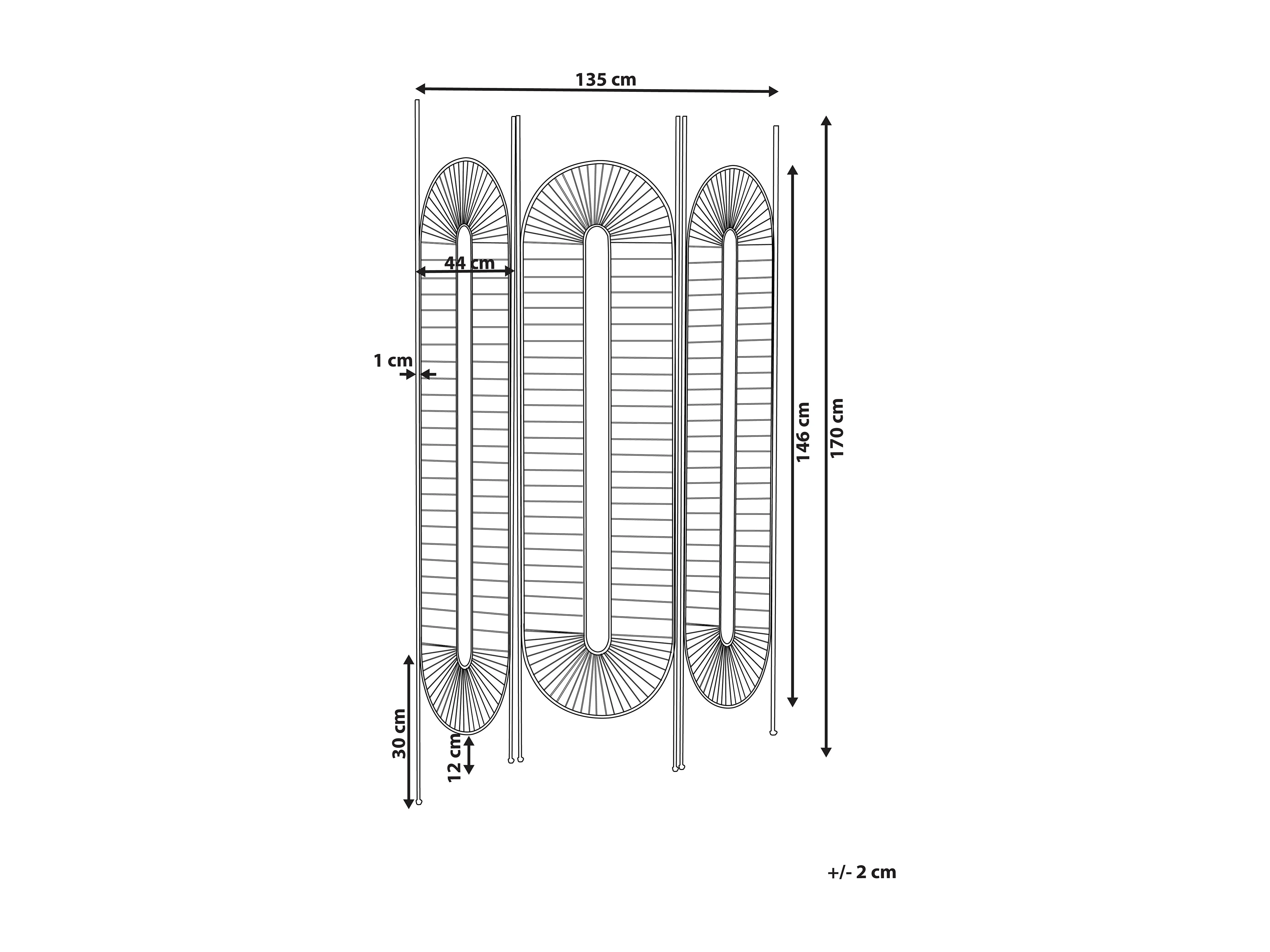 Séparateur de pièce à 3 panneaux NOALE Noir 135 cm 170 cm