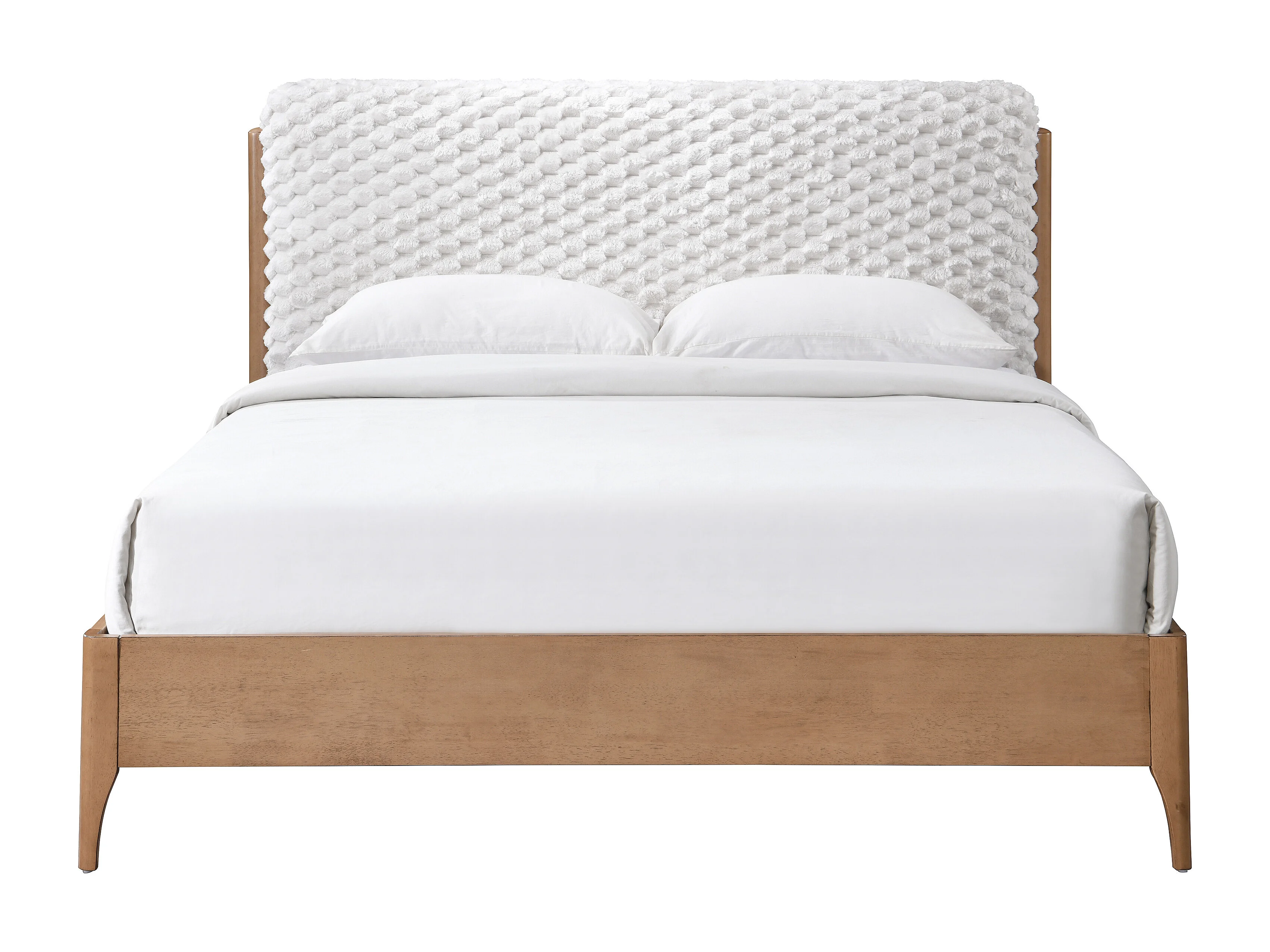 Lit 160 x 200 cm avec tête de lit en fausse fourrure – Blanc et naturel – SERAVELA