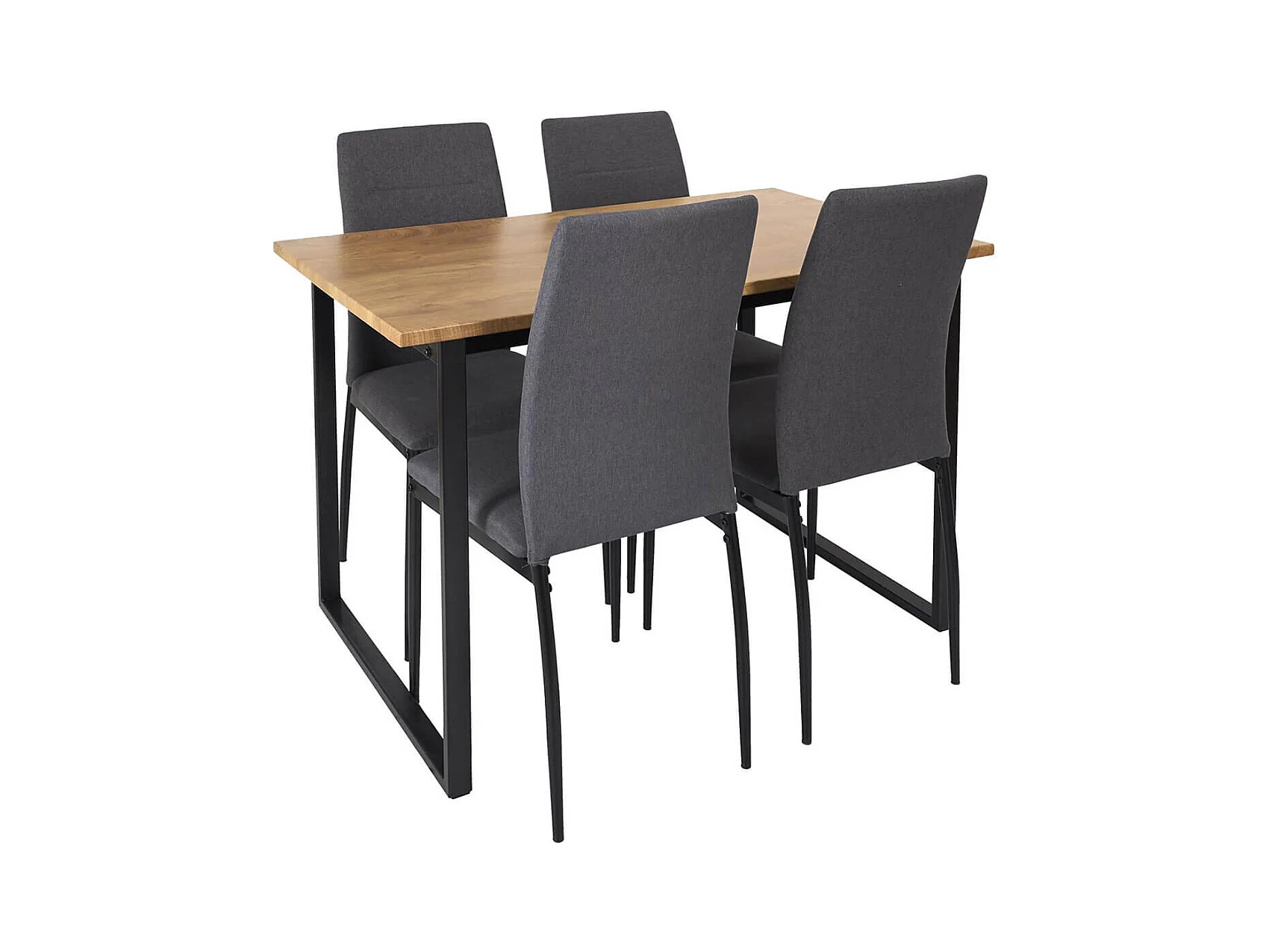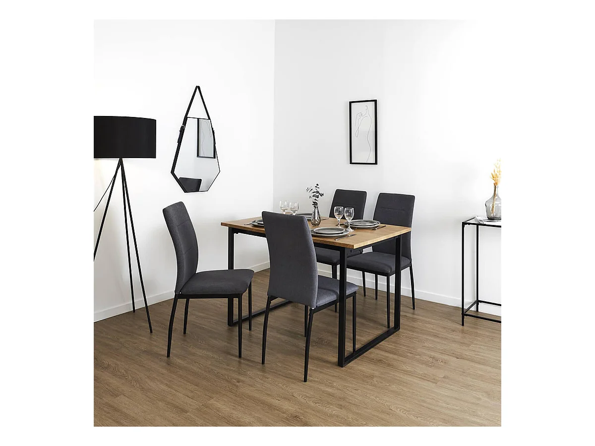 SERGIO - Ensemble Table en MDF et 4 Chaises en Tissu Gris Pieds Métal Noir