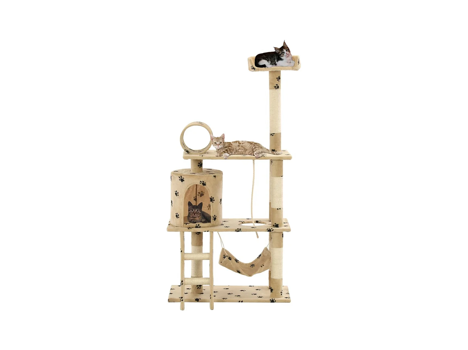 Serkan Arbre à chat avec griffoir en sisal 140cm Beige Motif de pattes