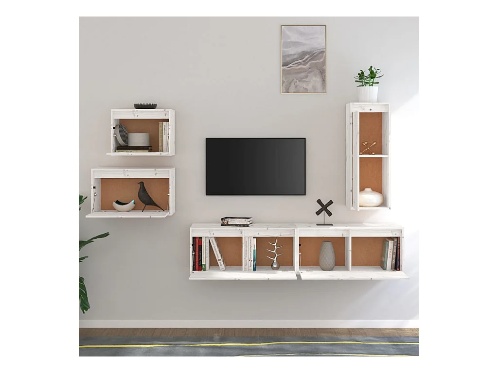 Sermin Meubles TV 5 pcs Blanc Bois massif de pin