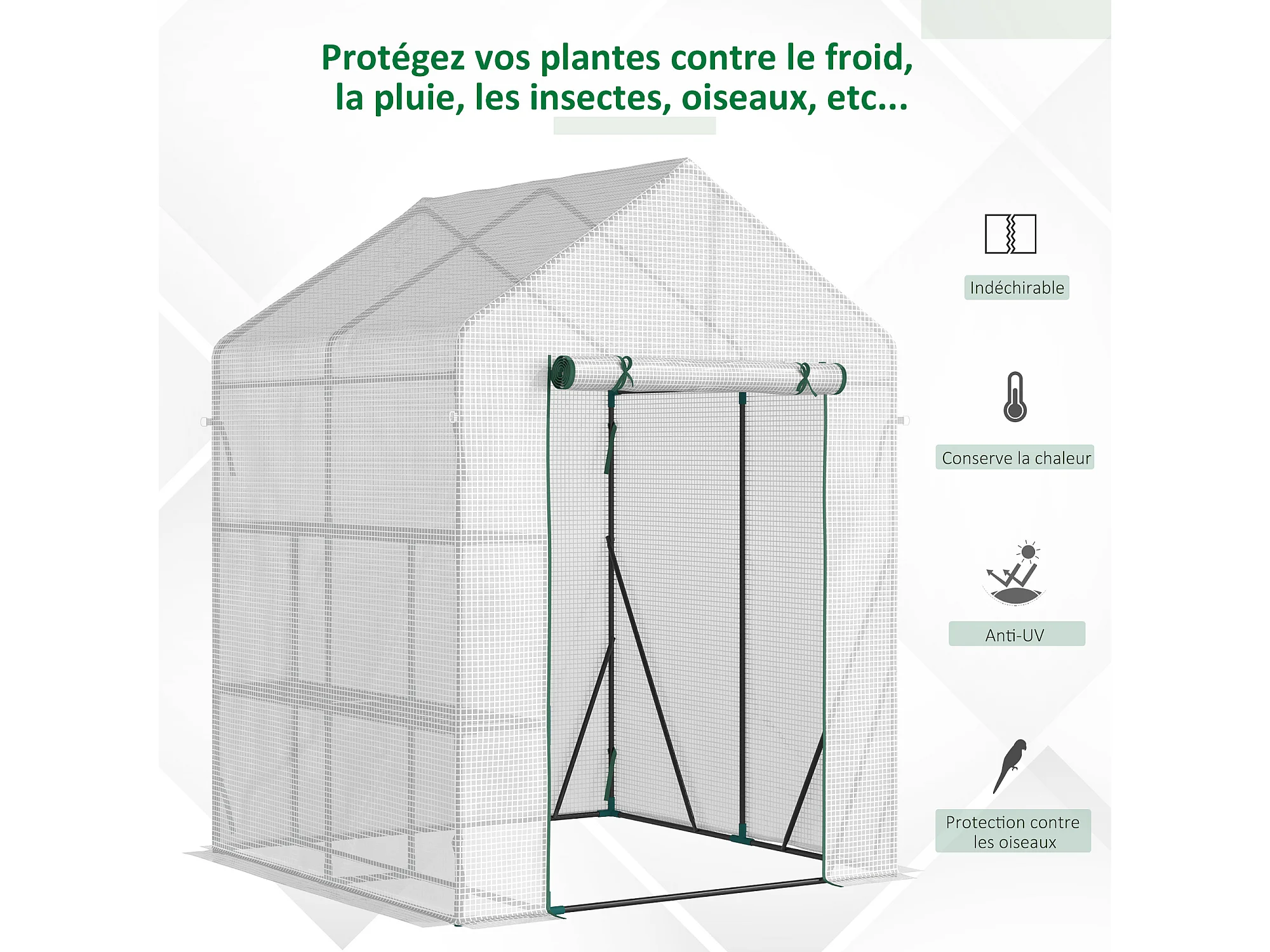 Serre de Jardin serre à tomates 1L x 0,5l x 1,5H m porte zippée déroulante acier thermolaqué PVC haute densité 140 g/m² anti-UV
