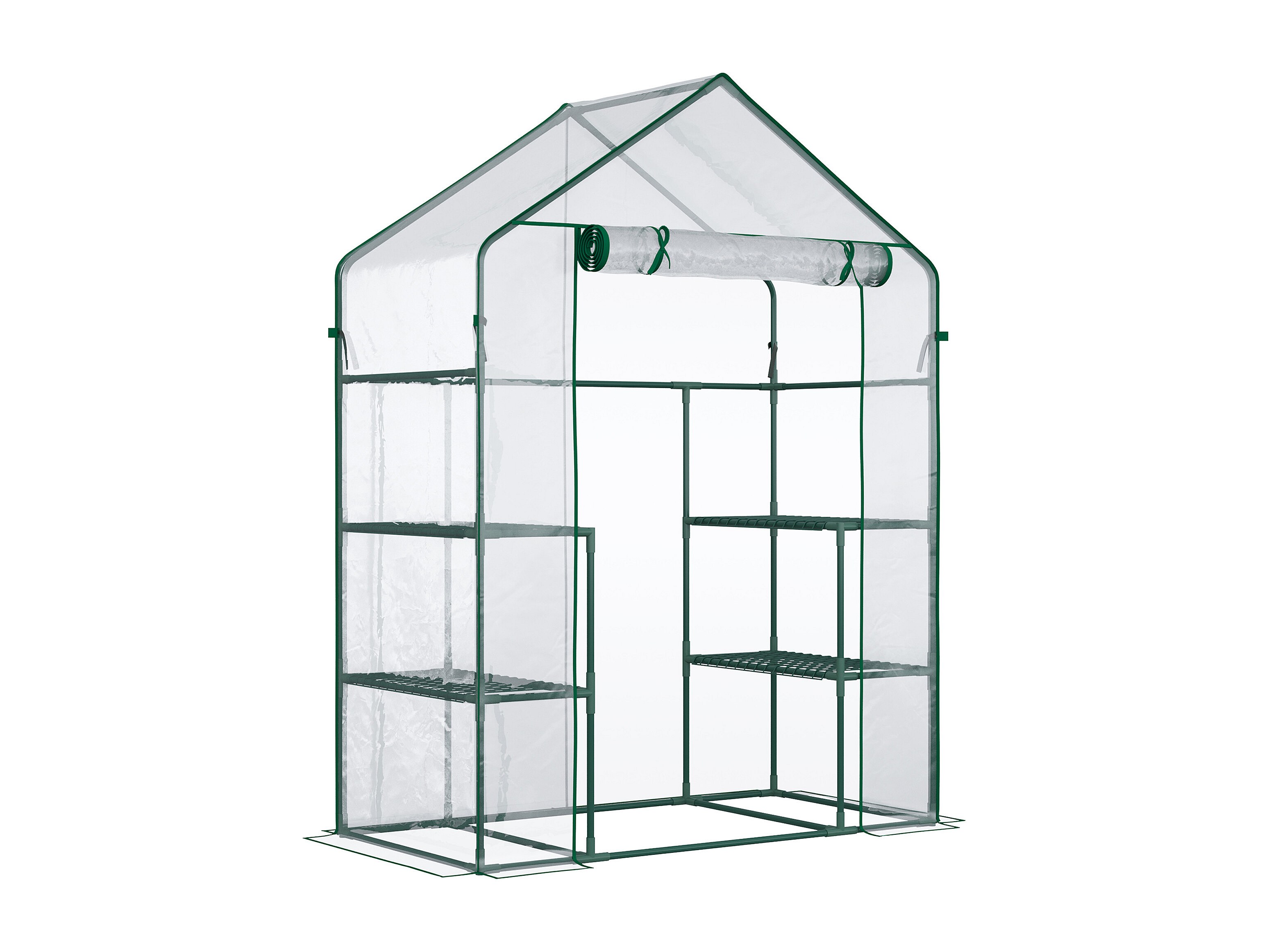 Mini serre de jardin 3 étagères porte enroulable 4 roulettes PE