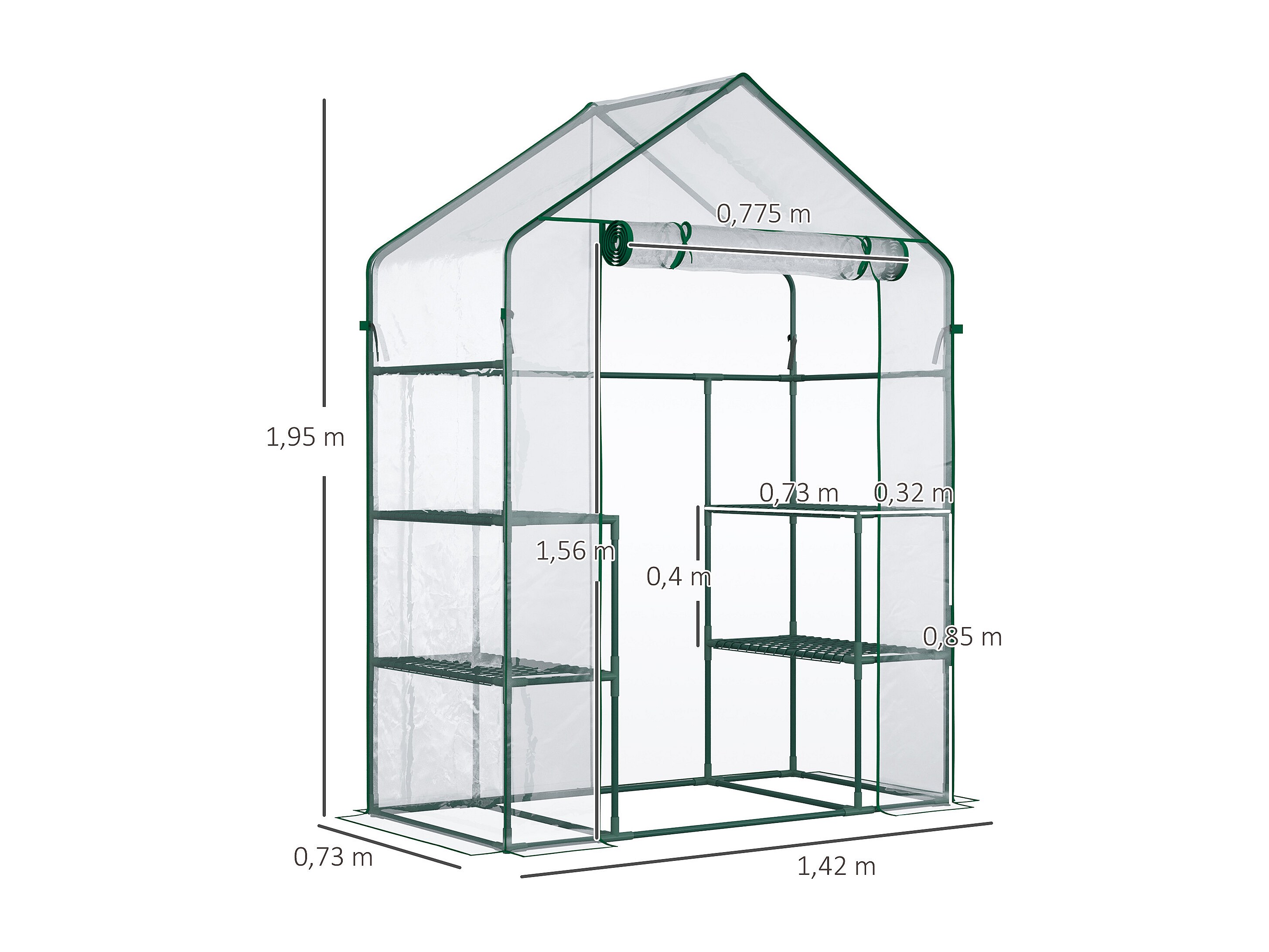 Serre de jardin 6 étagères - dim. 142L x 73l x 195H cm - porte - acier thermolaqué PVC haute densité anti-UV - transparent vert
