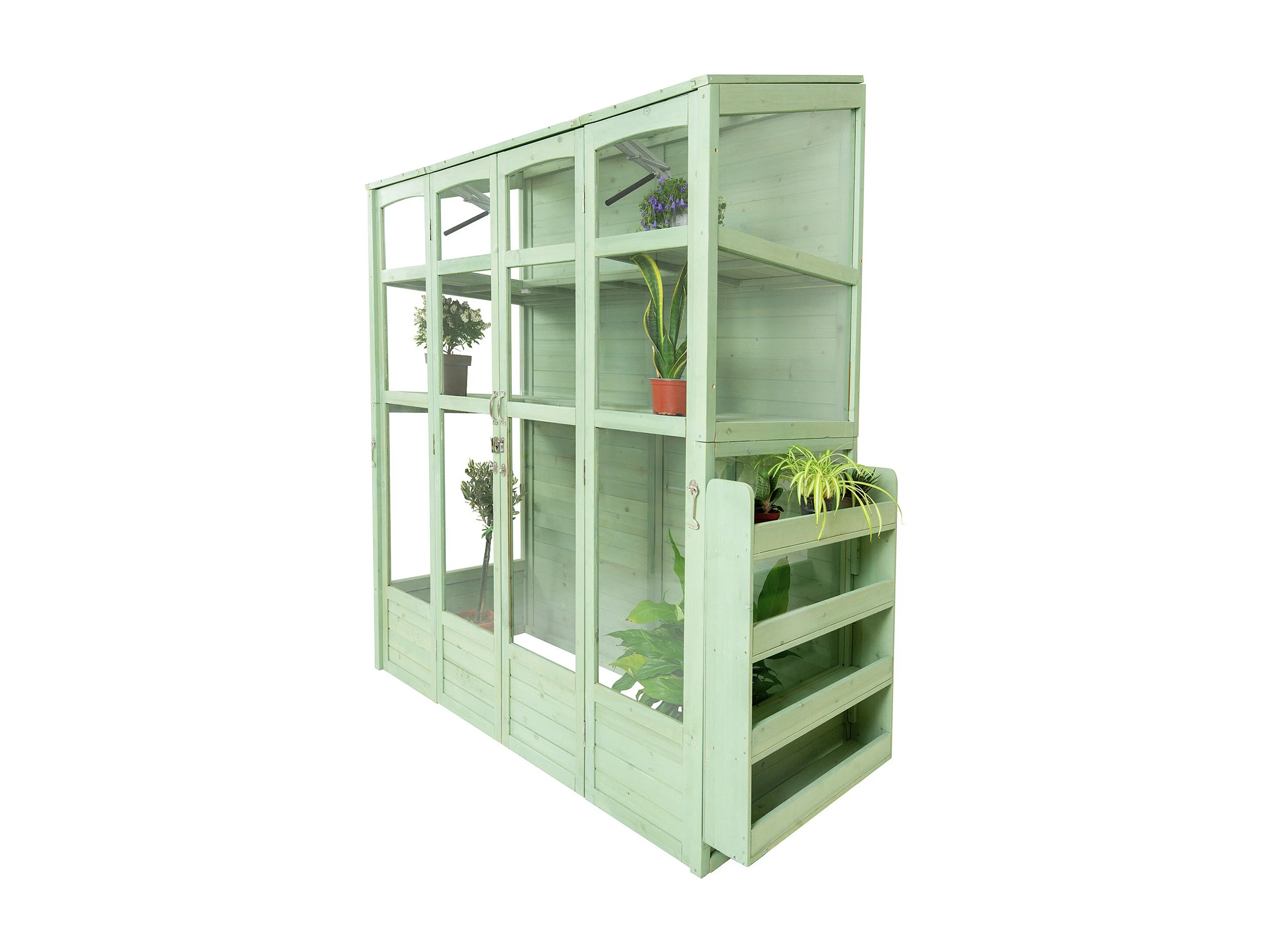 Serre de Jardin Adossée Bois Vert 2 x 1,55 m Accessible Haut Mur Auto-Vent