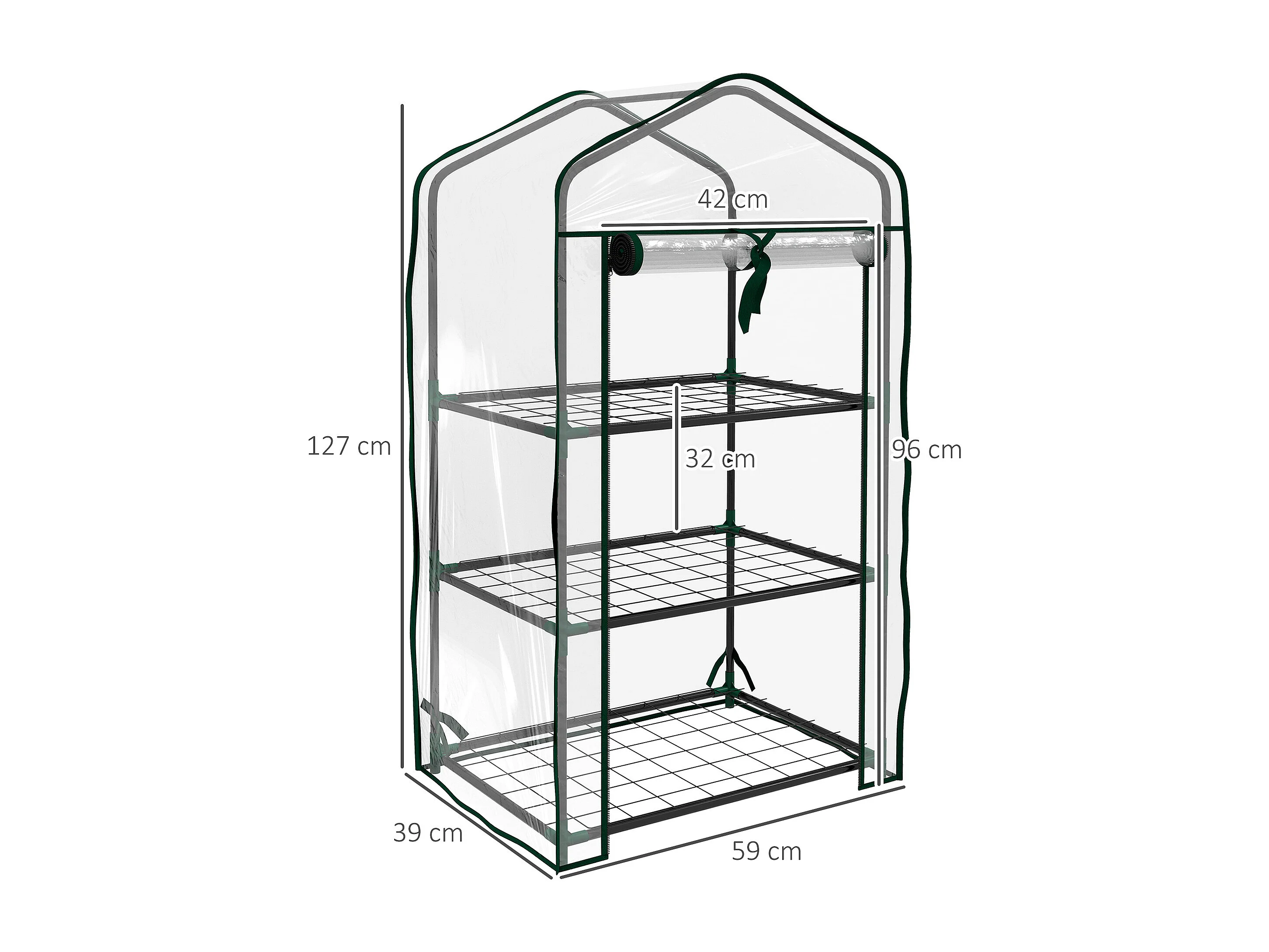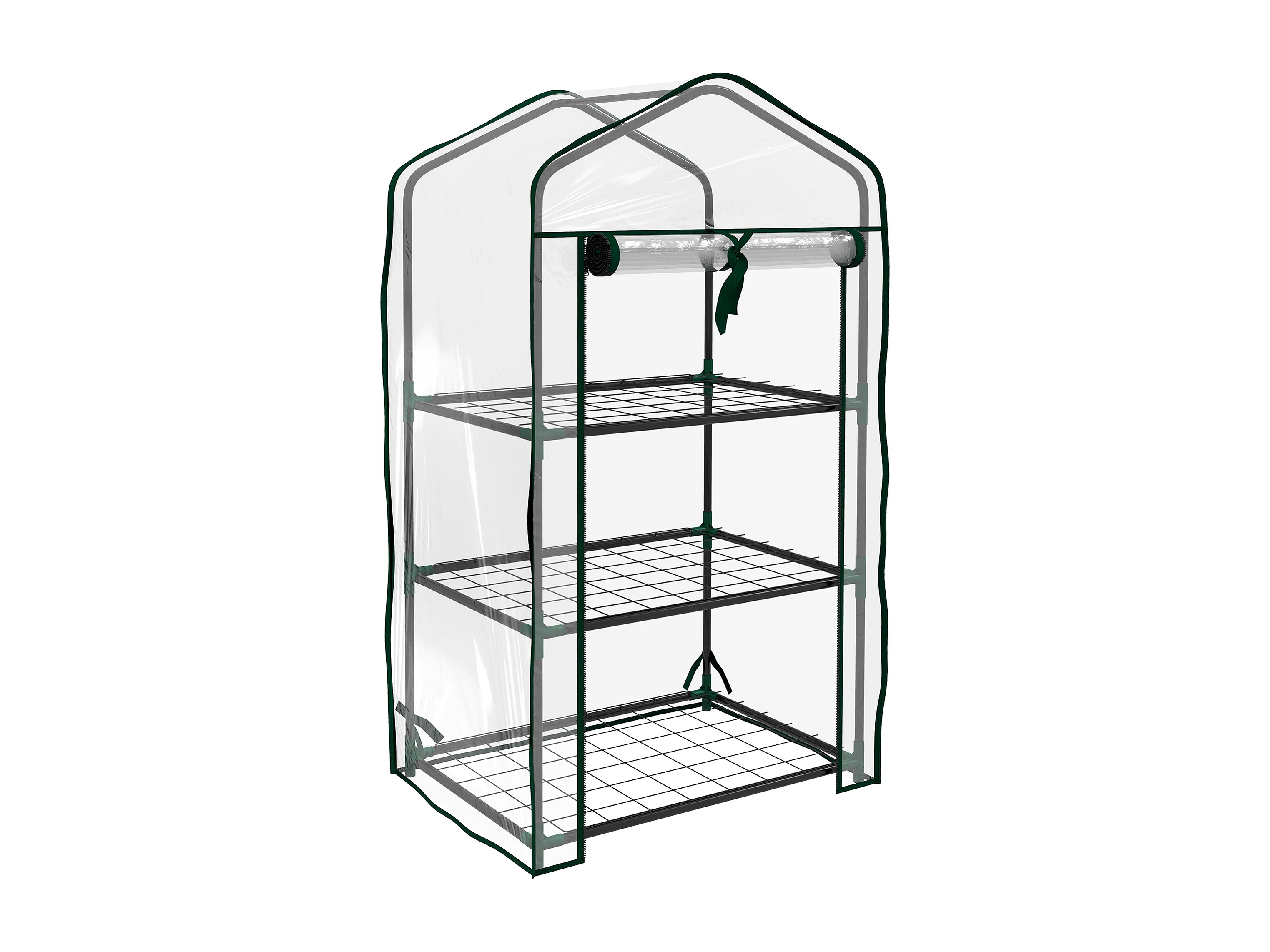 Mini serre de jardin 3 étagères porte enroulable 4 roulettes PE