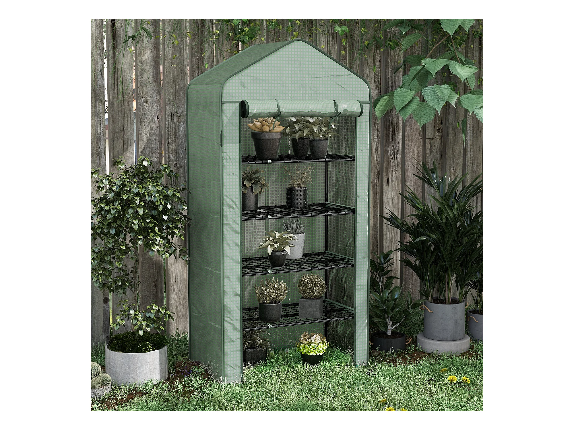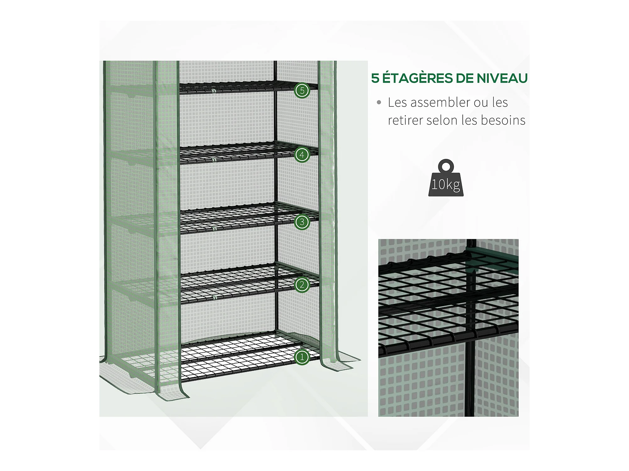 Serre de jardin balcon 5 niveaux porte acier PE vert