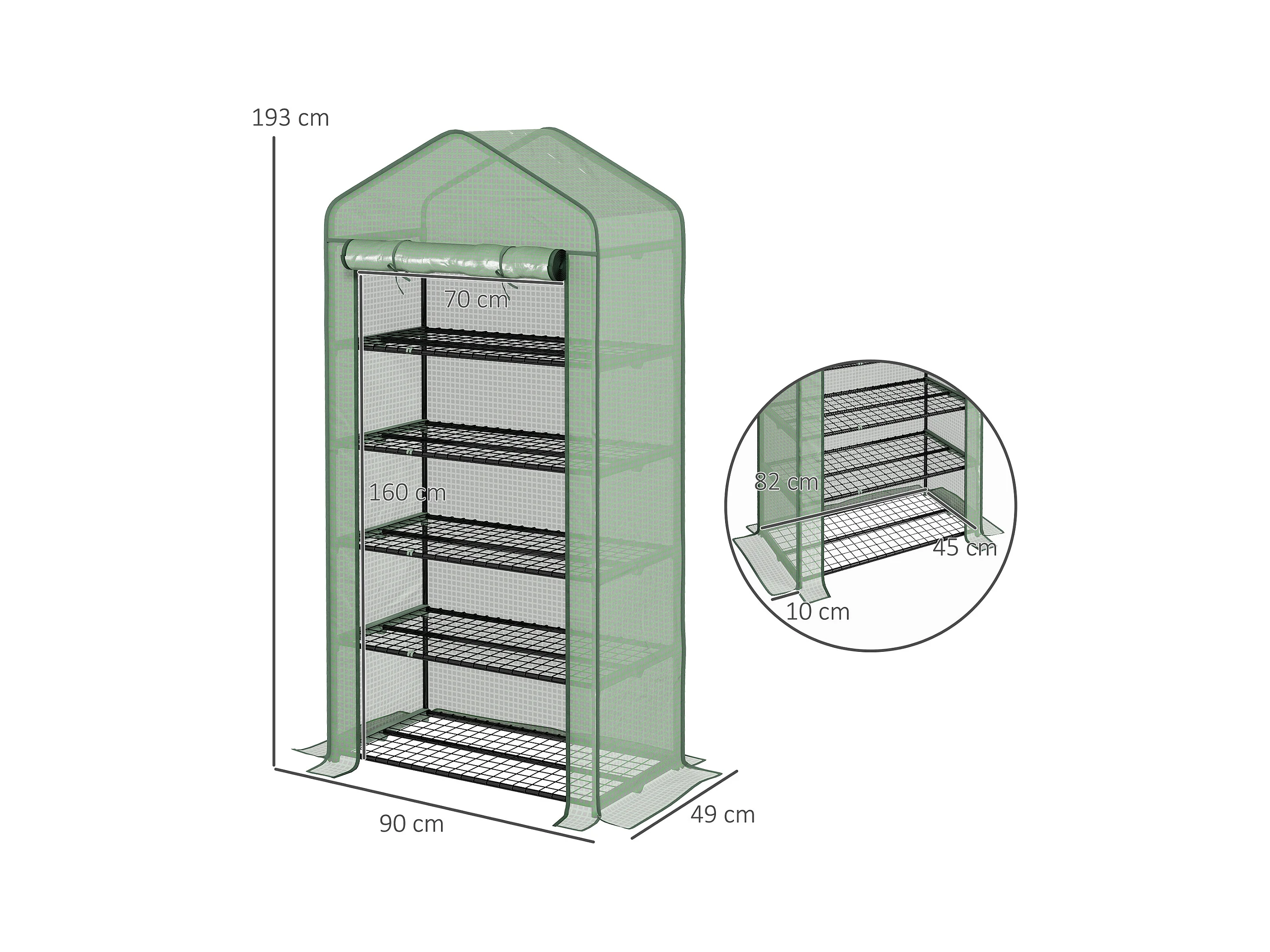 Serre de jardin balcon étagère serre 4 niveaux 0,7L x 0,5l x 1,6H m acier époxy bâche amovible PVC haute densité transparente