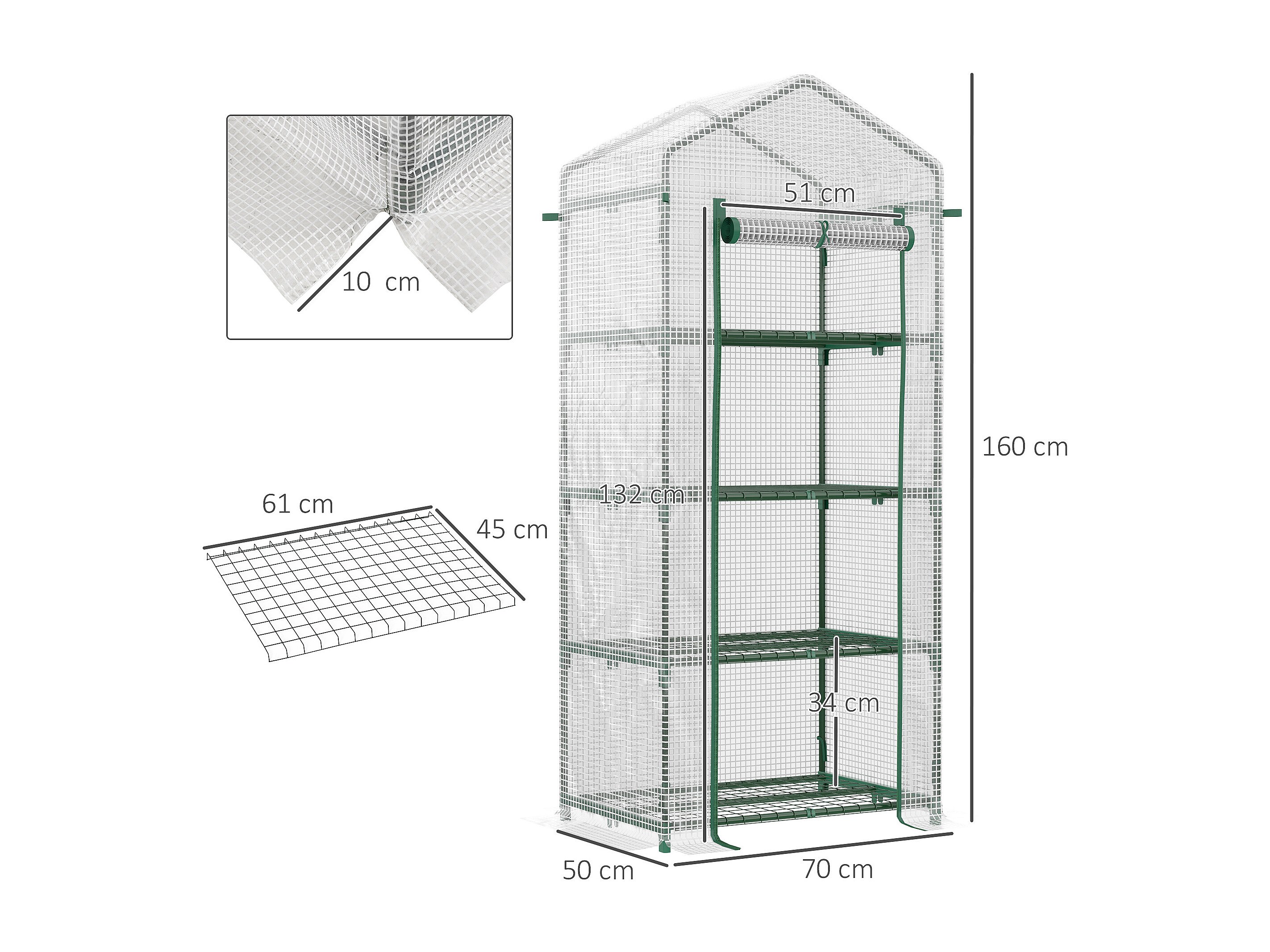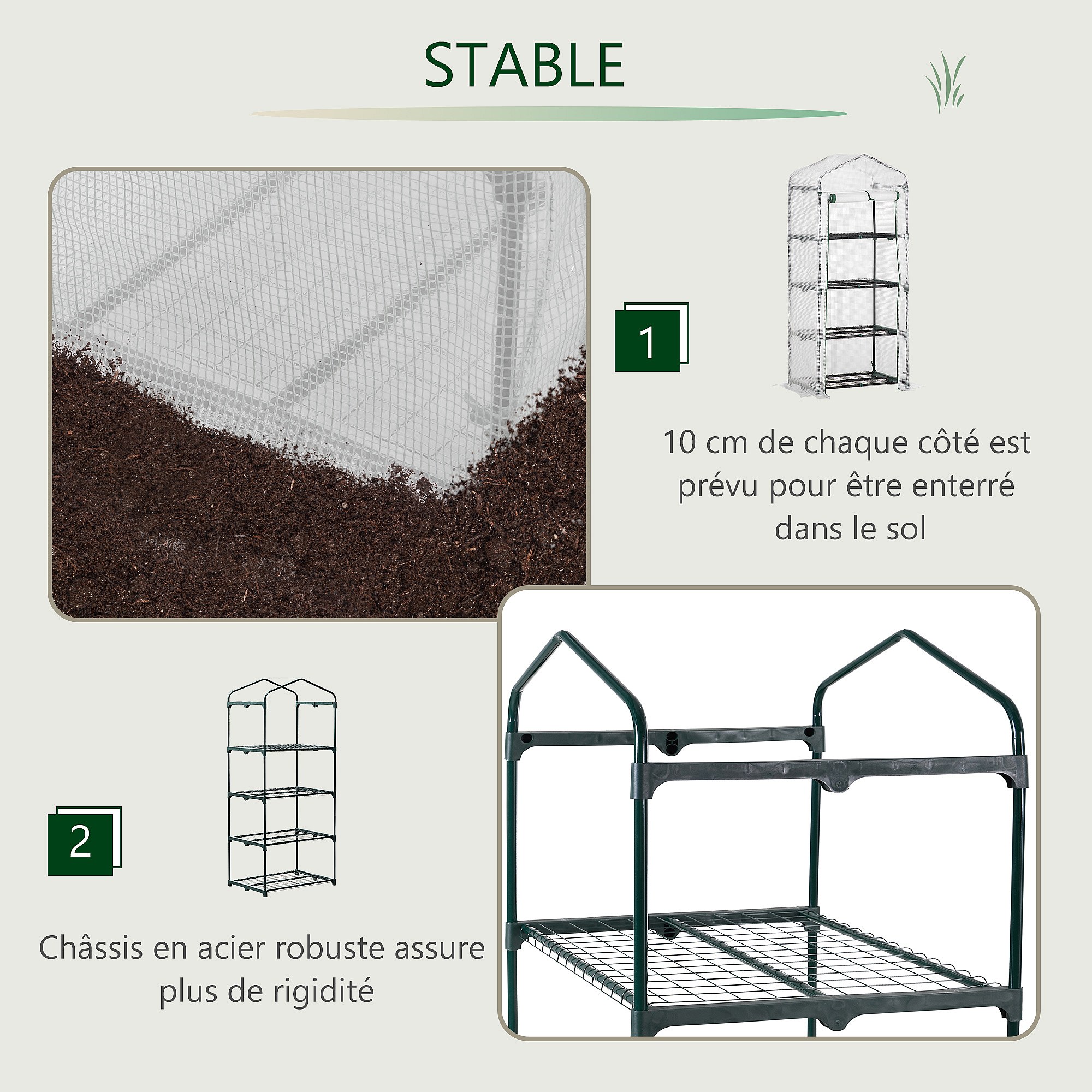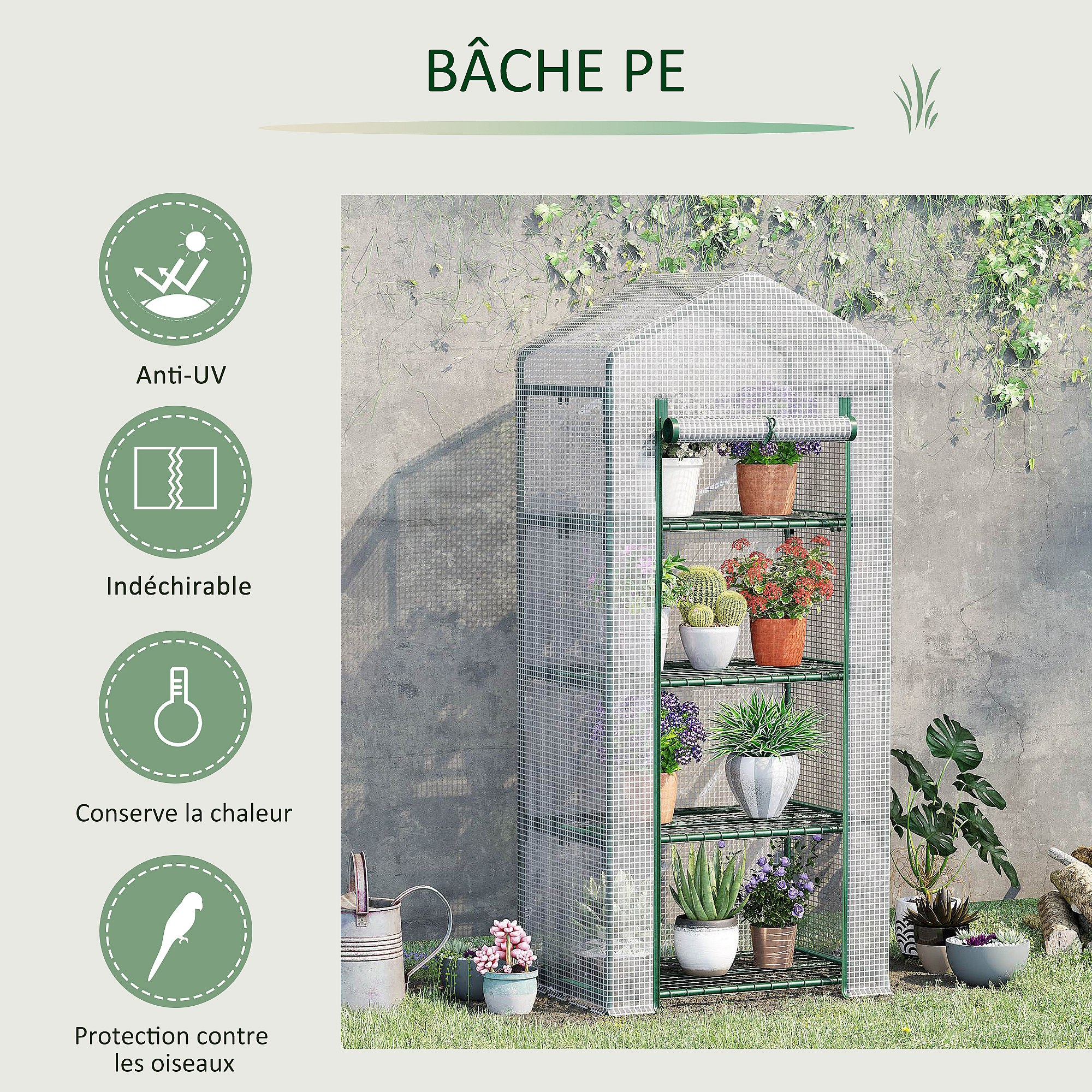 Serre de jardin balcon étagère serre 4 niveaux 0,7L x 0,5l x 1,6H m acier galvanisé bâche amovible PE haute densité blanc