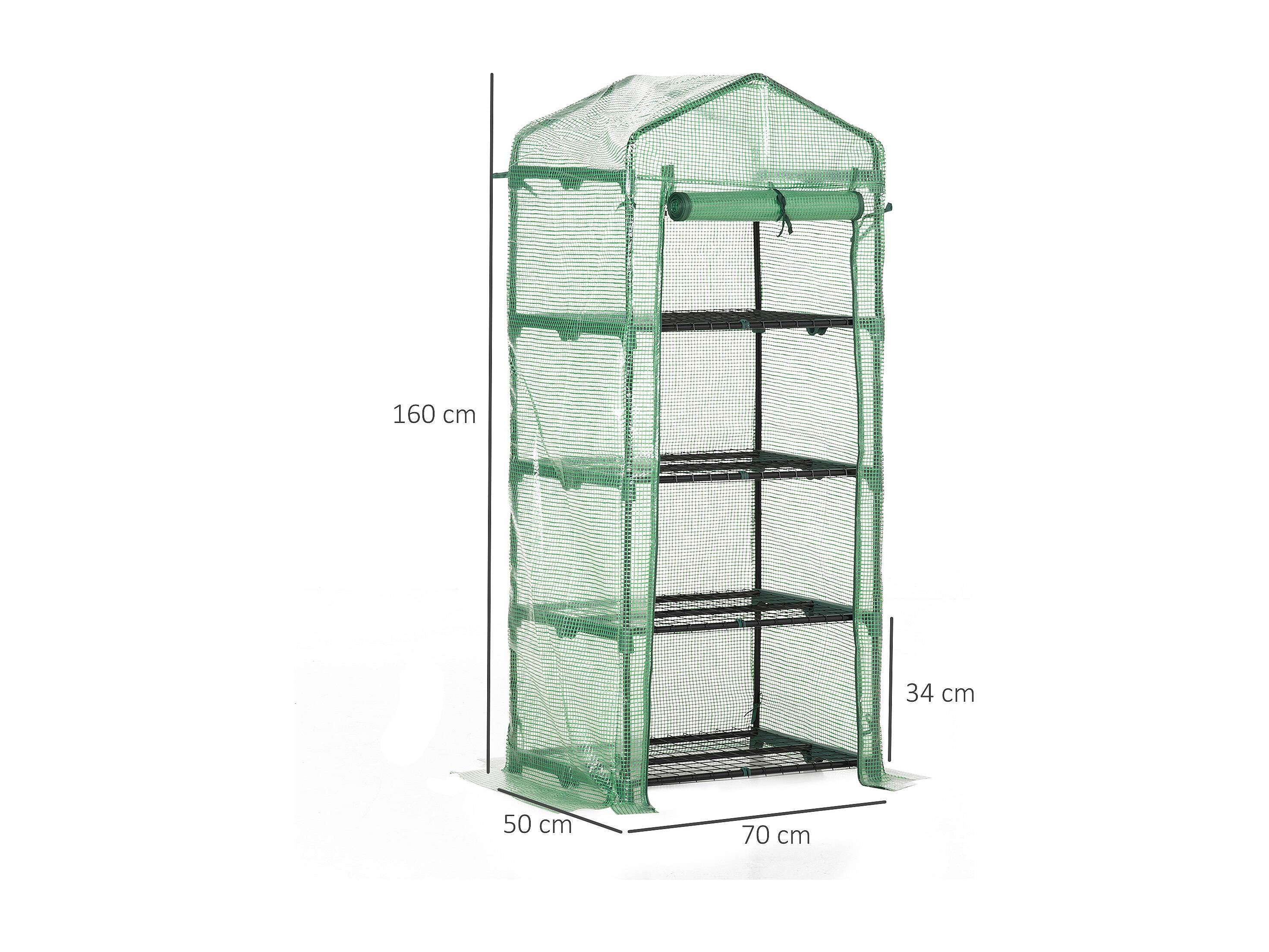 Serre de jardin balcon étagère serre 4 niveaux 0,7L x 0,5l x 1,6H m acier époxy bâche amovible PVC haute densité transparente