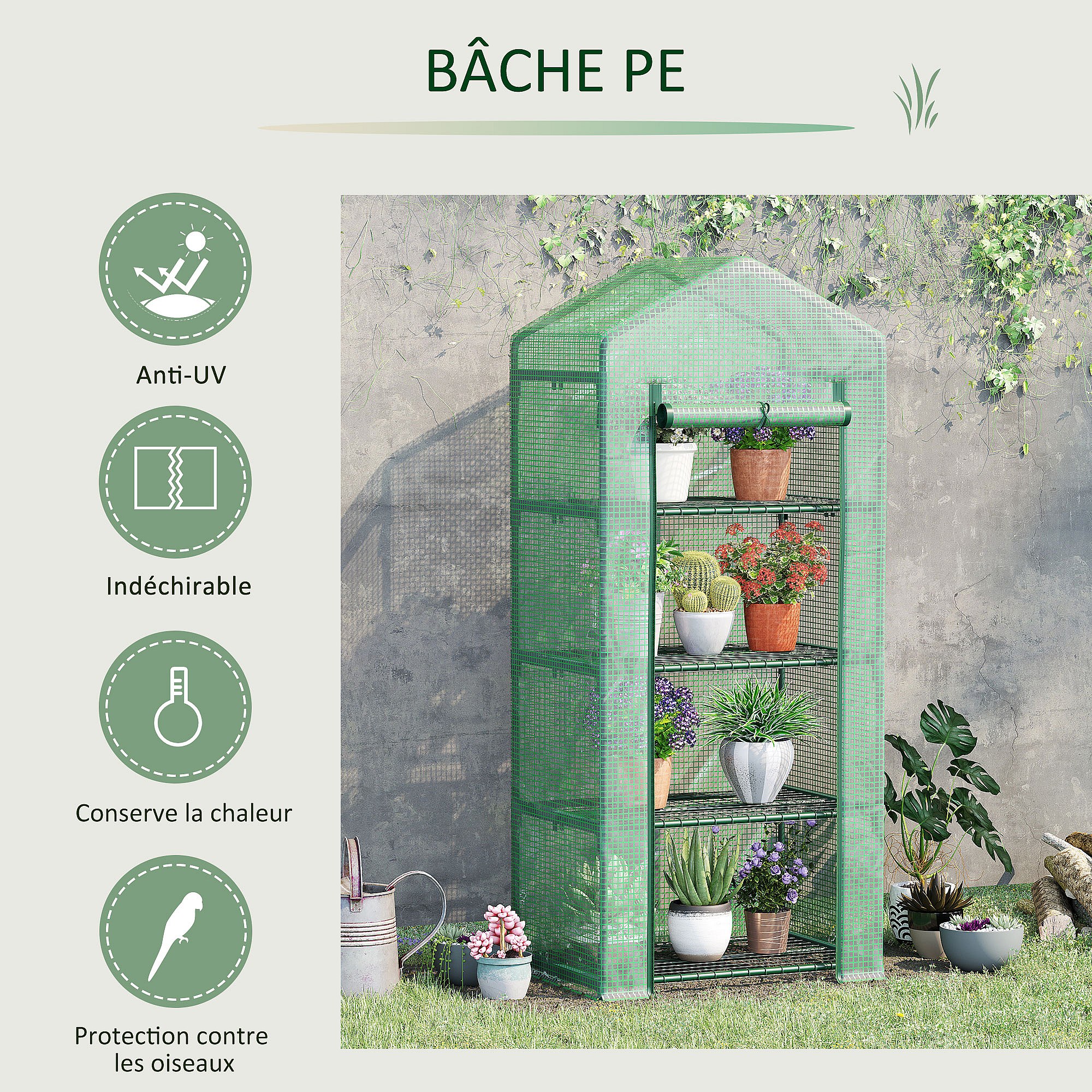 Serre de jardin balcon étagère serre 4 niveaux 0,7L x 0,5l x 1,6H m acier galvanisé bâche amovible PE haute densité vert