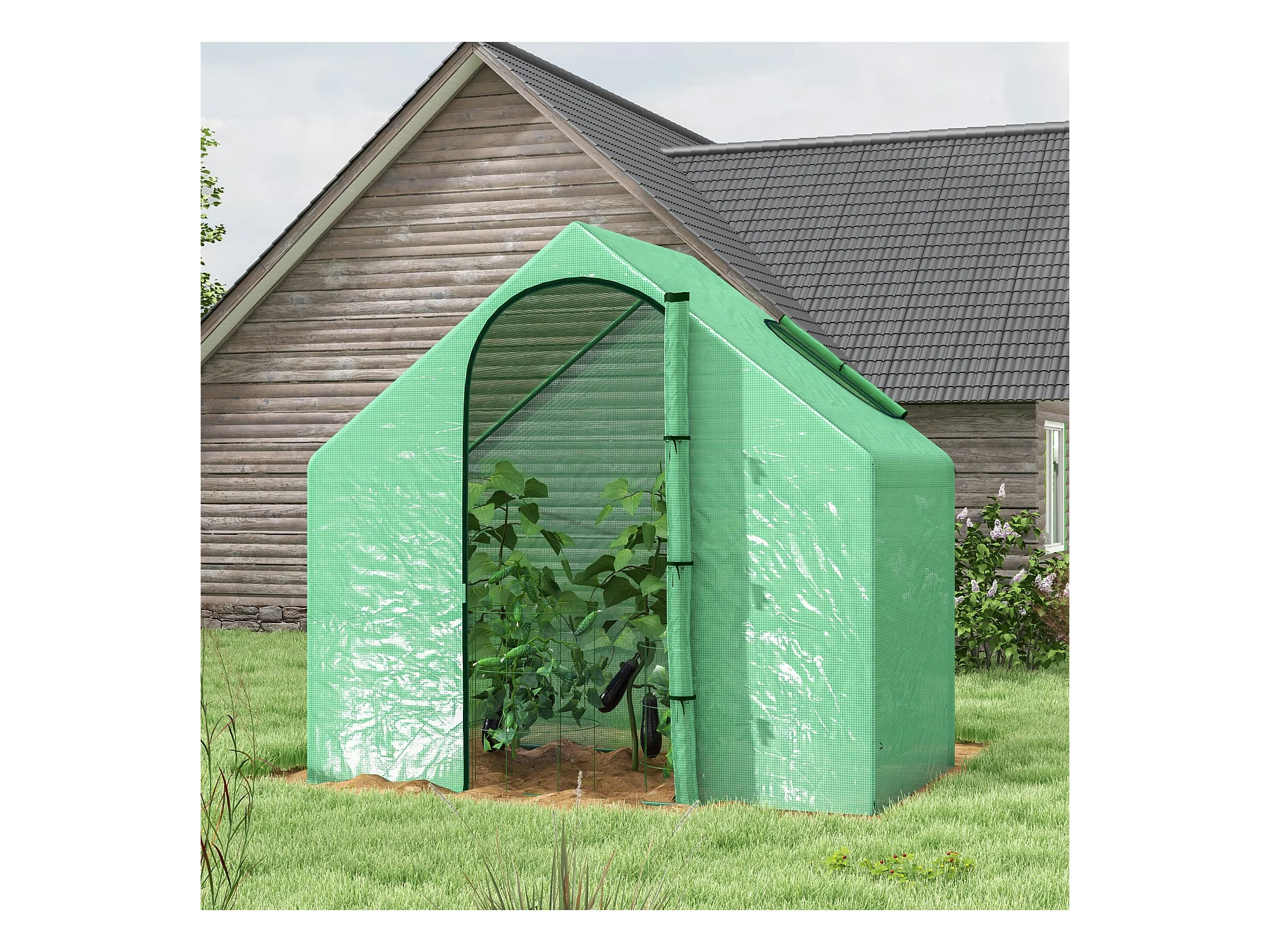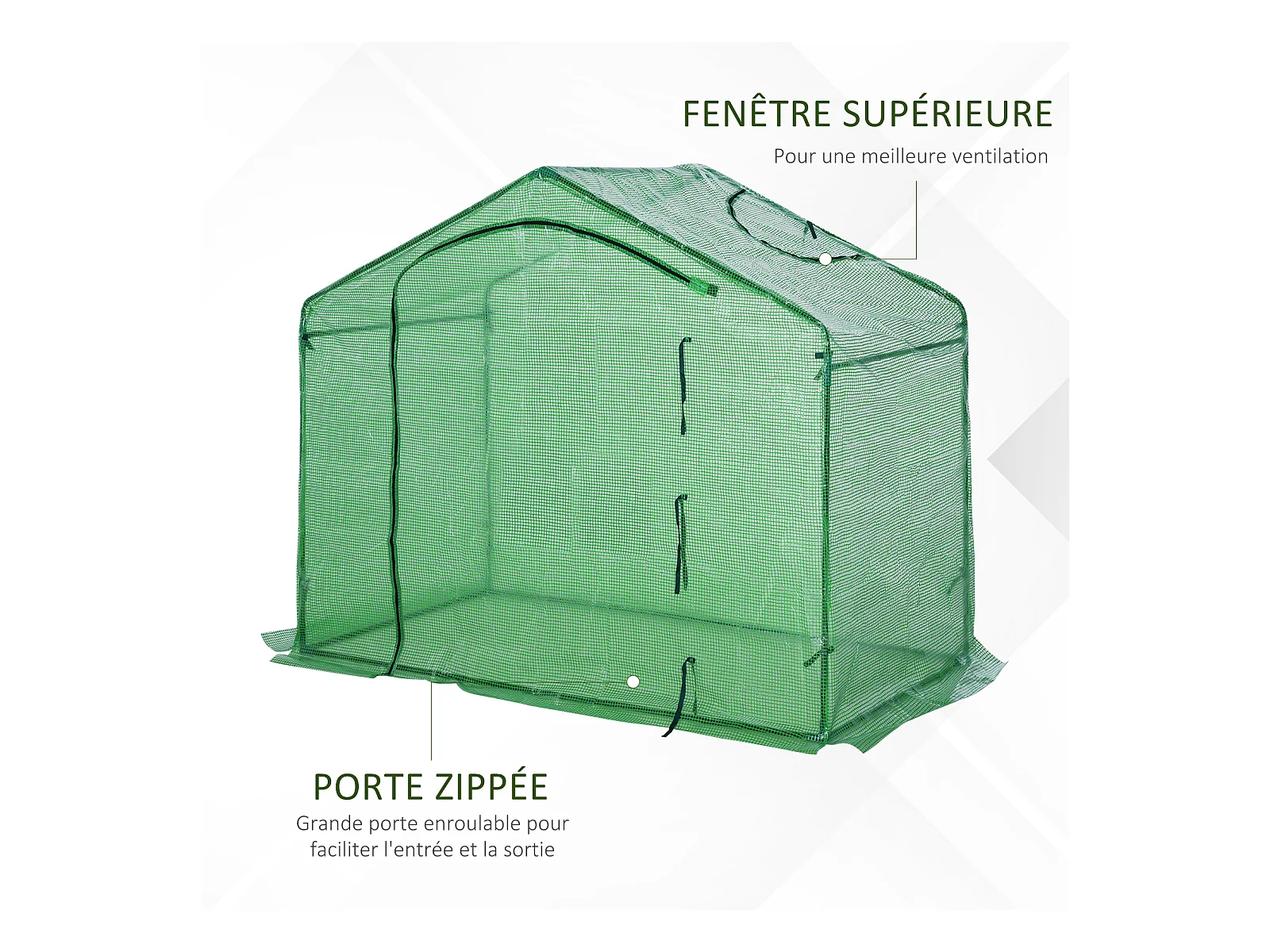 Mini serre de jardin serre à tomates dim. 180L x 90l x 90H cm acier PE haute densité 140 g/m² anti-UV 2 fenêtres zippées enroulables vert