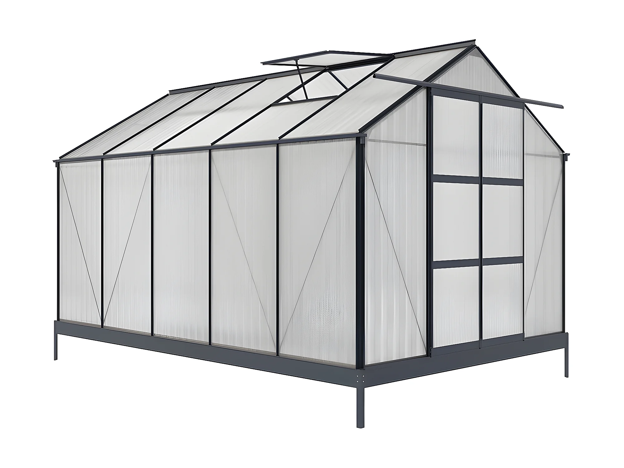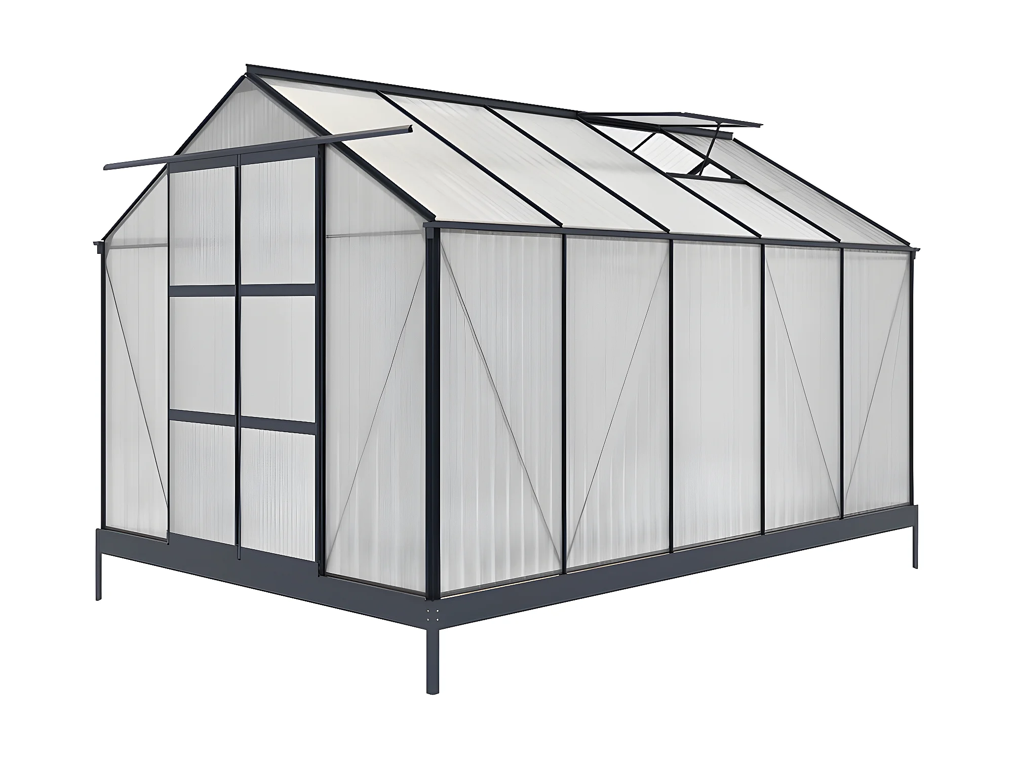 Serre de Jardin en polycarbonate de 9 m² avec embase - Anthracite - COROLLE II