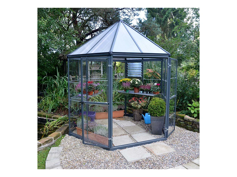 Serre de jardin hexagonale en aluminium et polycarbonate Oasis 4m²