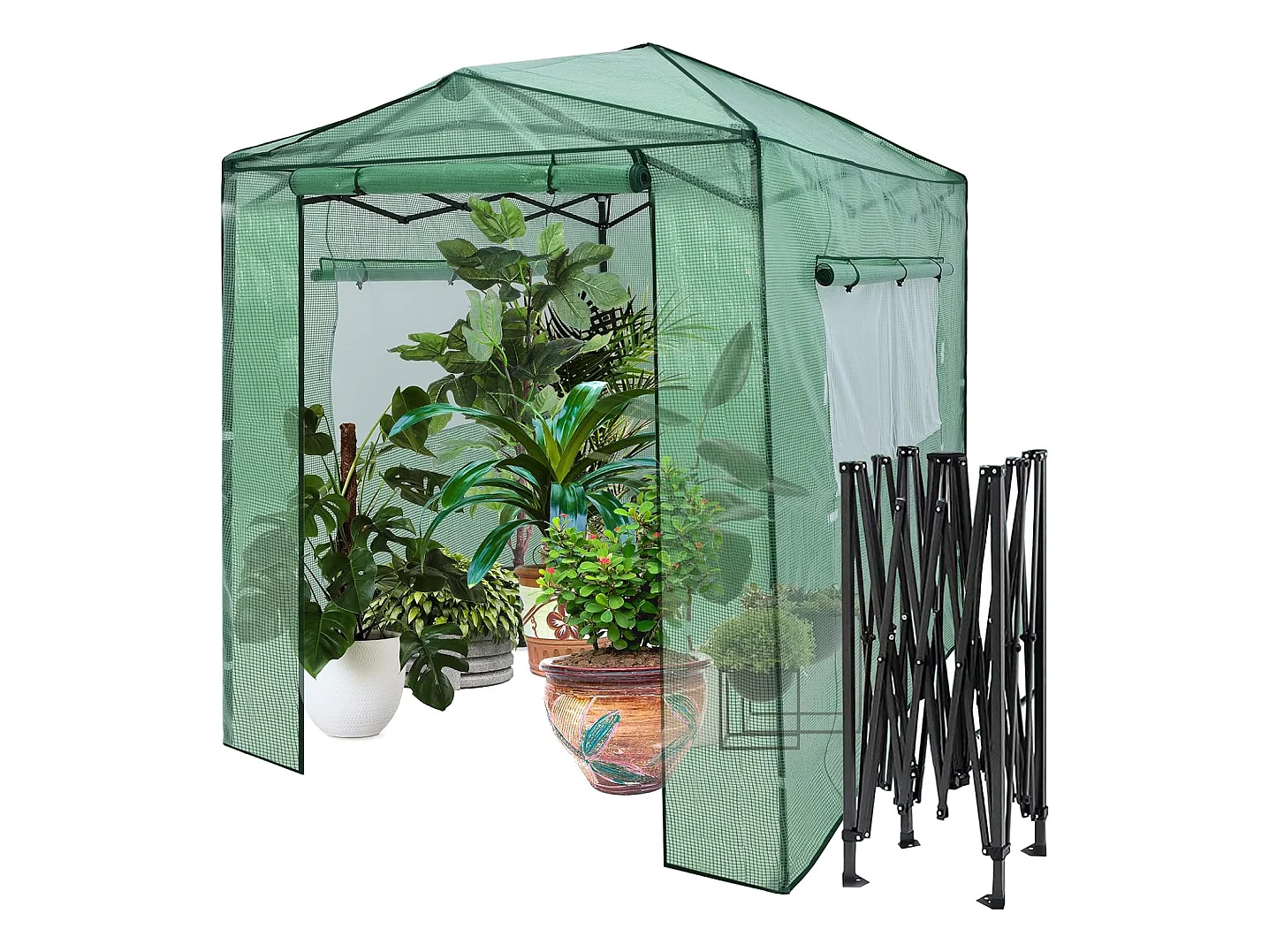 Serre pop-up - serre de jardin pop-up - 4 portes zippées enroulables - dim. 2,5L x 1,25l x 1,35H m - sac transport inclus - PVC vert