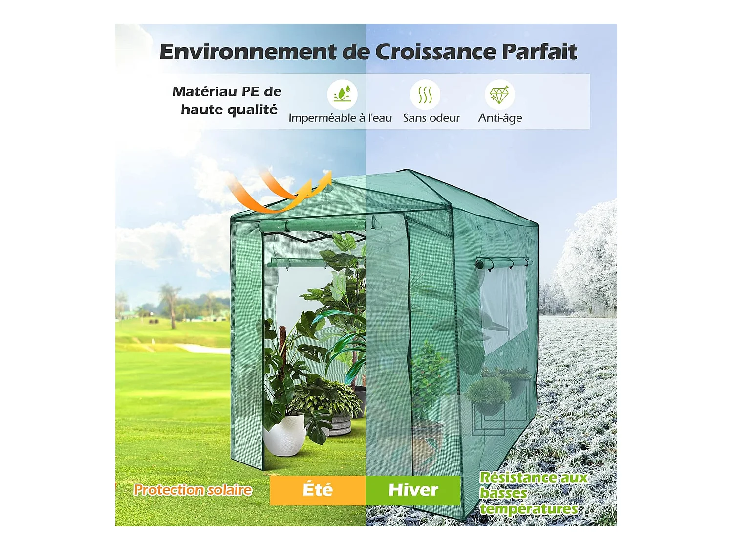 Serre de jardin balcon terrasse serre pour tomates 1,8L x 1l x 1,68H m acier PE imperméable transparent vert