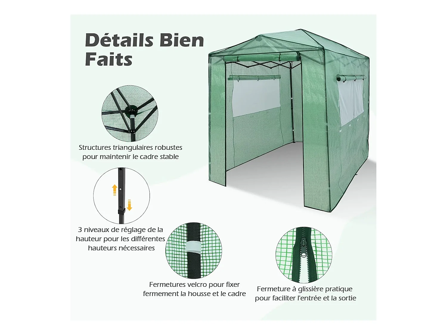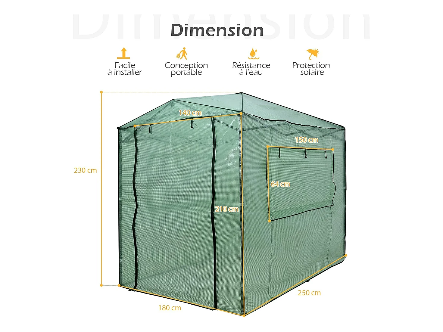 Serre de Jardin Portable avec 2 Larges Fenêtres Observation,180 x 250CM