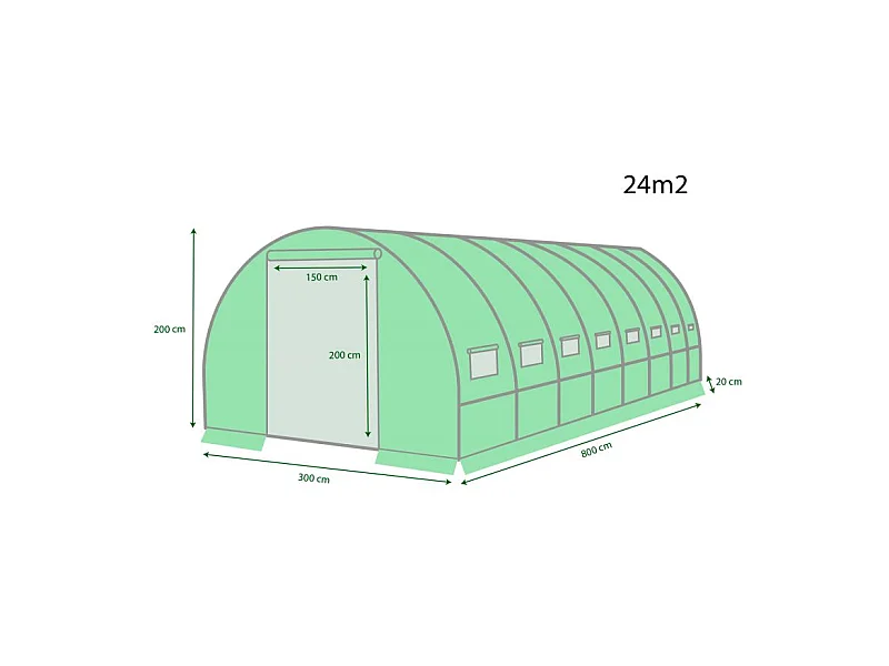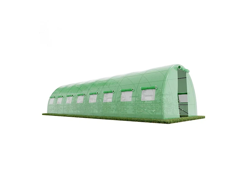 Serre de Jardin Tunnel 24m² - bâche armée - avec fenêtres latérales et porte zipée