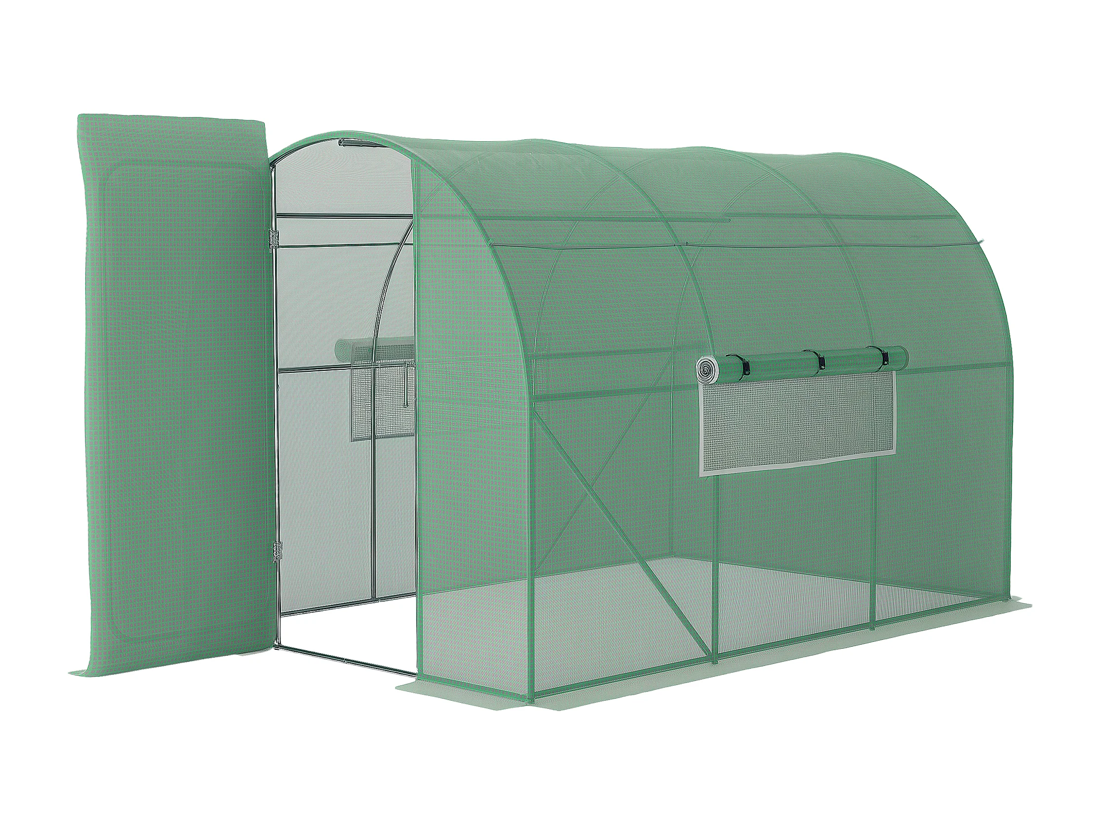 Serre de jardin tunnel surface sol 6 m² 3L x 2l x 2,10H m châssis tubulaire renforcé porte zippée 4 fenêtres enroulables vert