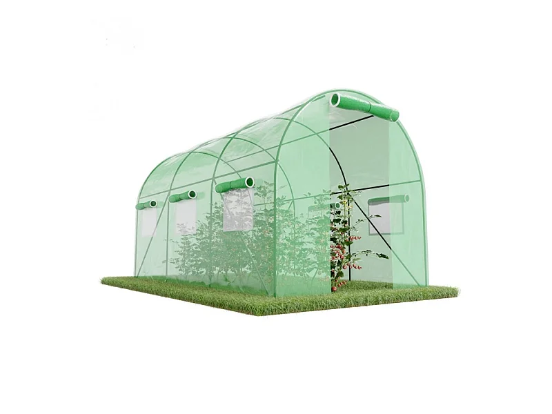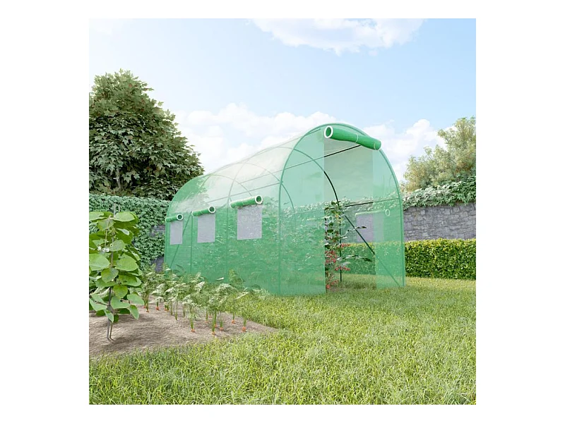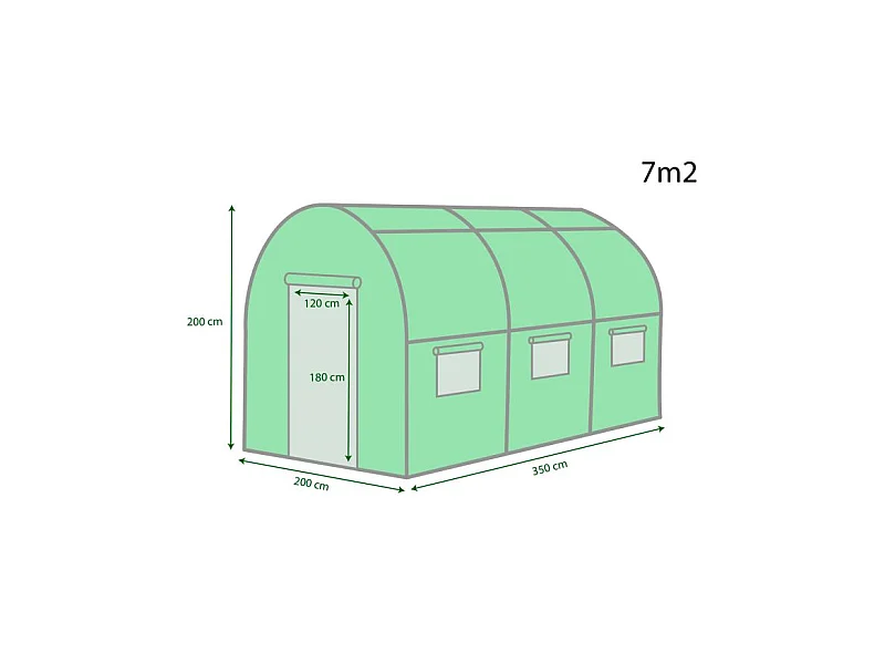 Serre de Jardin Tunnel 7m² - bâche armée - avec fenêtres latérales et porte zipée