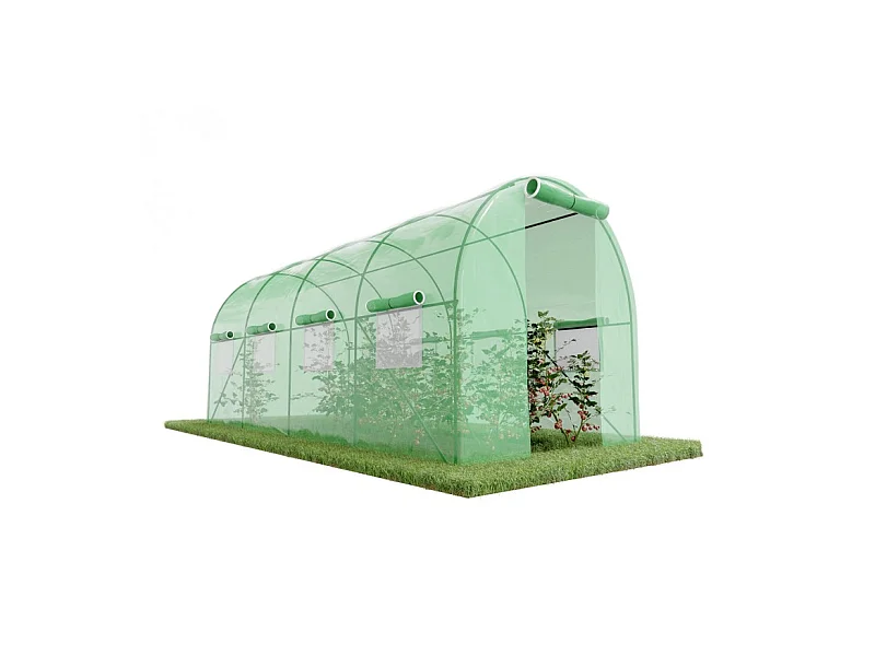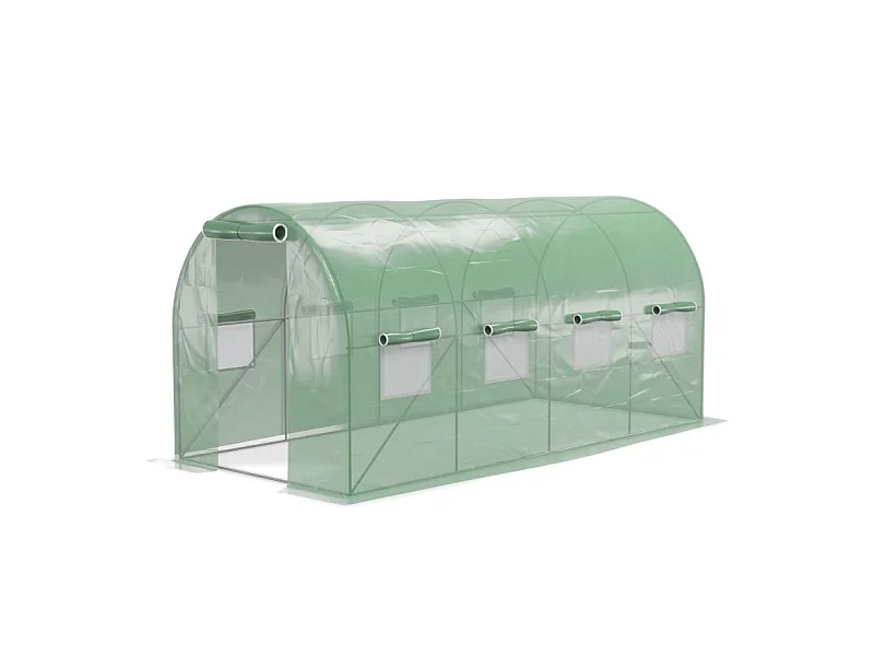 Serre de Jardin Tunnel 9m² - bâche armée - avec fenêtres latérales et porte zipée