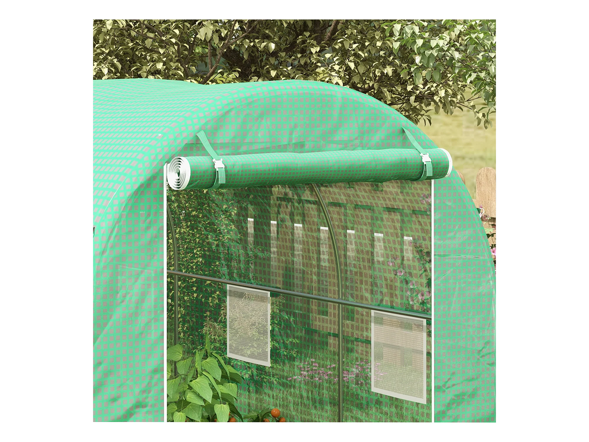 Serre de jardin tunnel surface sol 6 m² 3L x 2l x 2H m châssis tubulaire renforcé porte zippée 6 fenêtres enroulables vert
