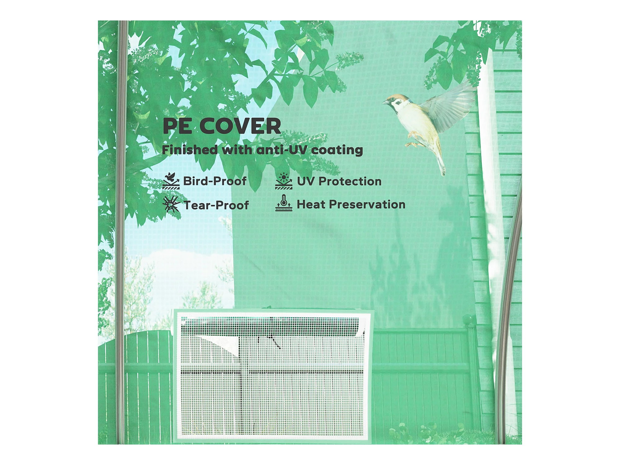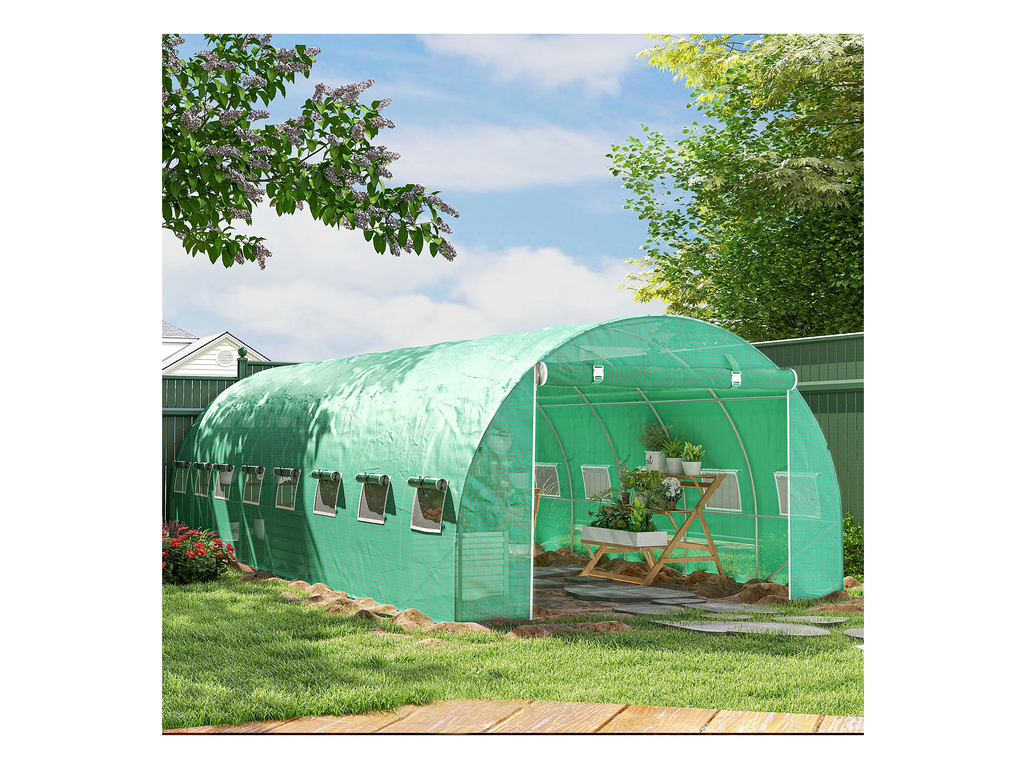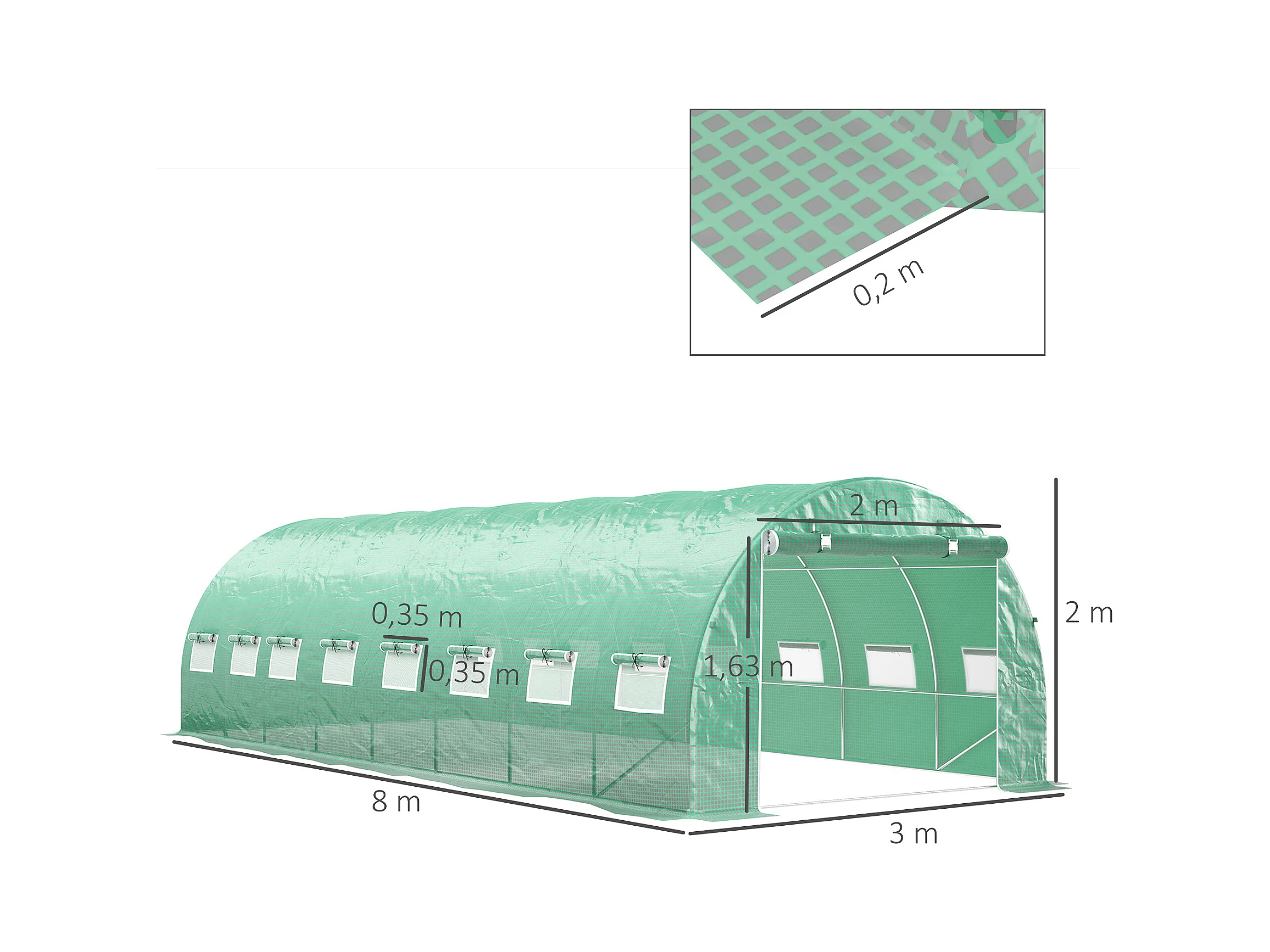 Serre tunnel 24m² dim. 8L x 3l x 2H m - 16 fenêtres, porte zippée - acier galvanisé PE haute densité vert