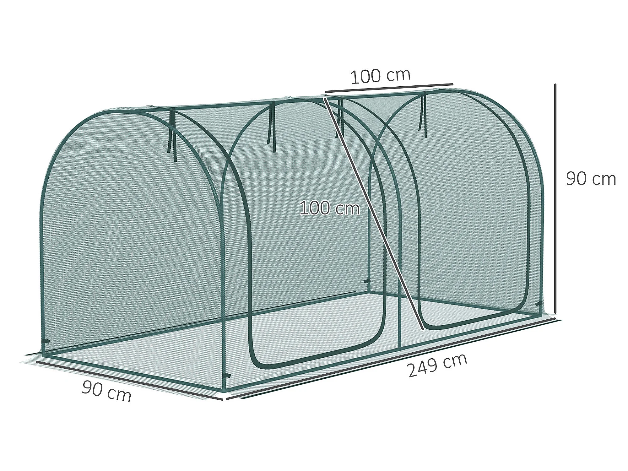 Serre tunnel de jardin serre à tomates filet protection solaire 2 portes zippées enroulables acier HDPE vert