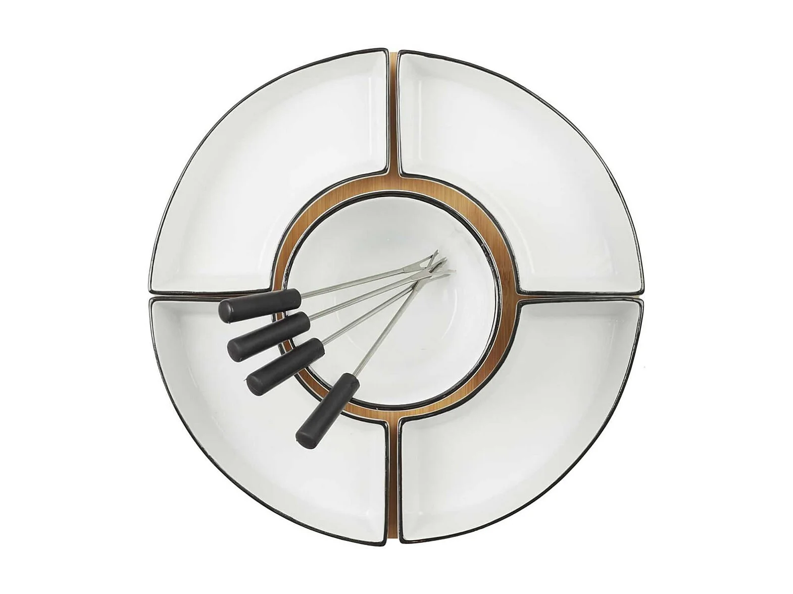 Service A Fondue Chauffe-plat Et Pique X4 Blanc, Noir, Marron