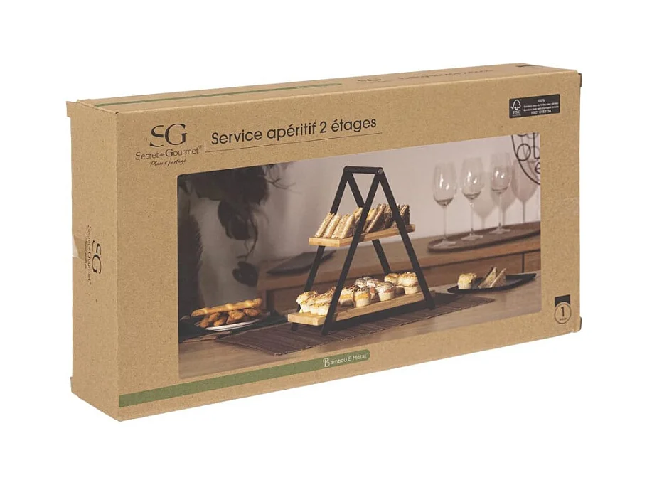 Service Apéritif 2 Étages "Bambou" 29cm Naturel