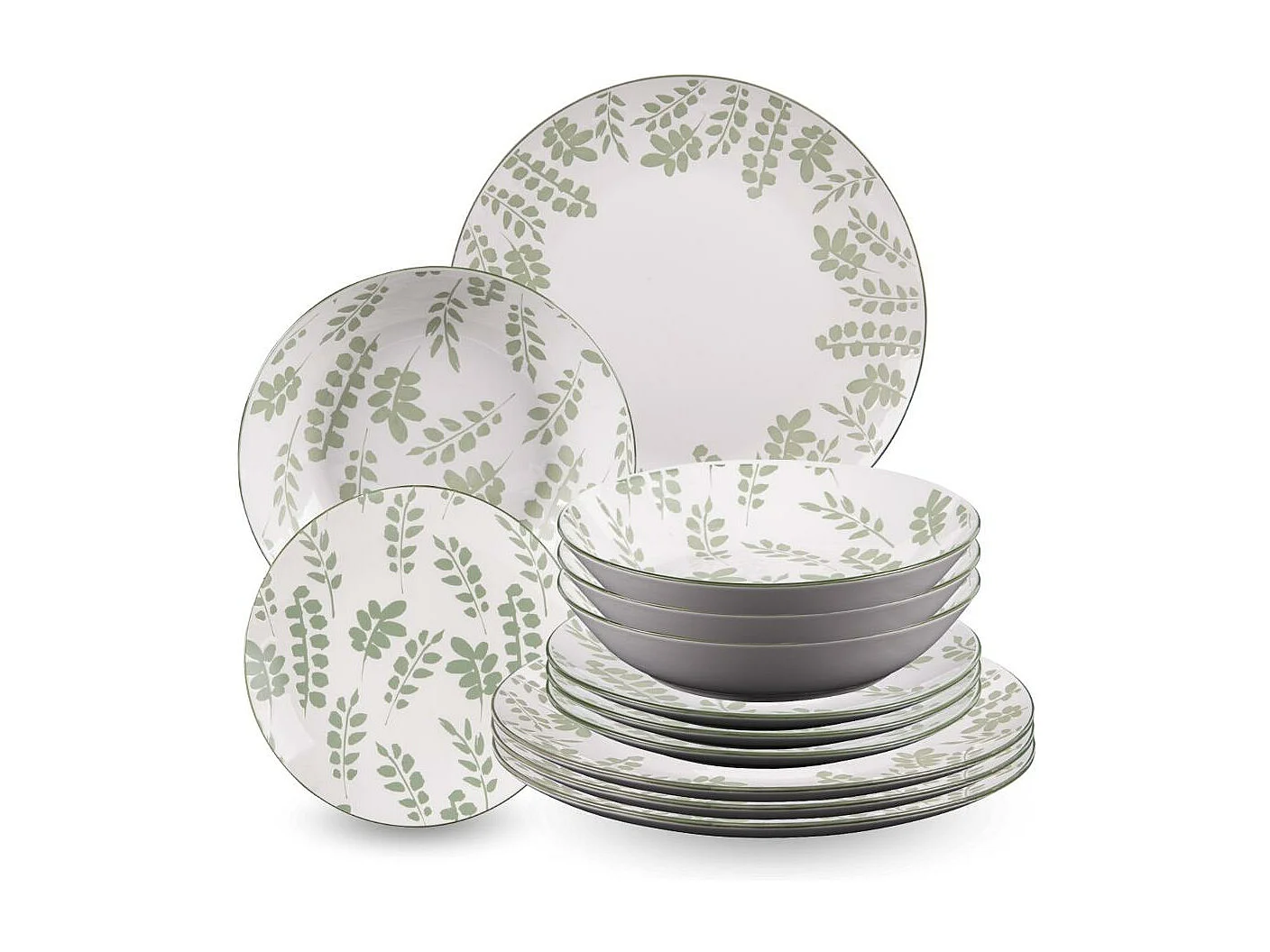 Service d'assiettes Vésuvio Vert Sauge 12 pièces