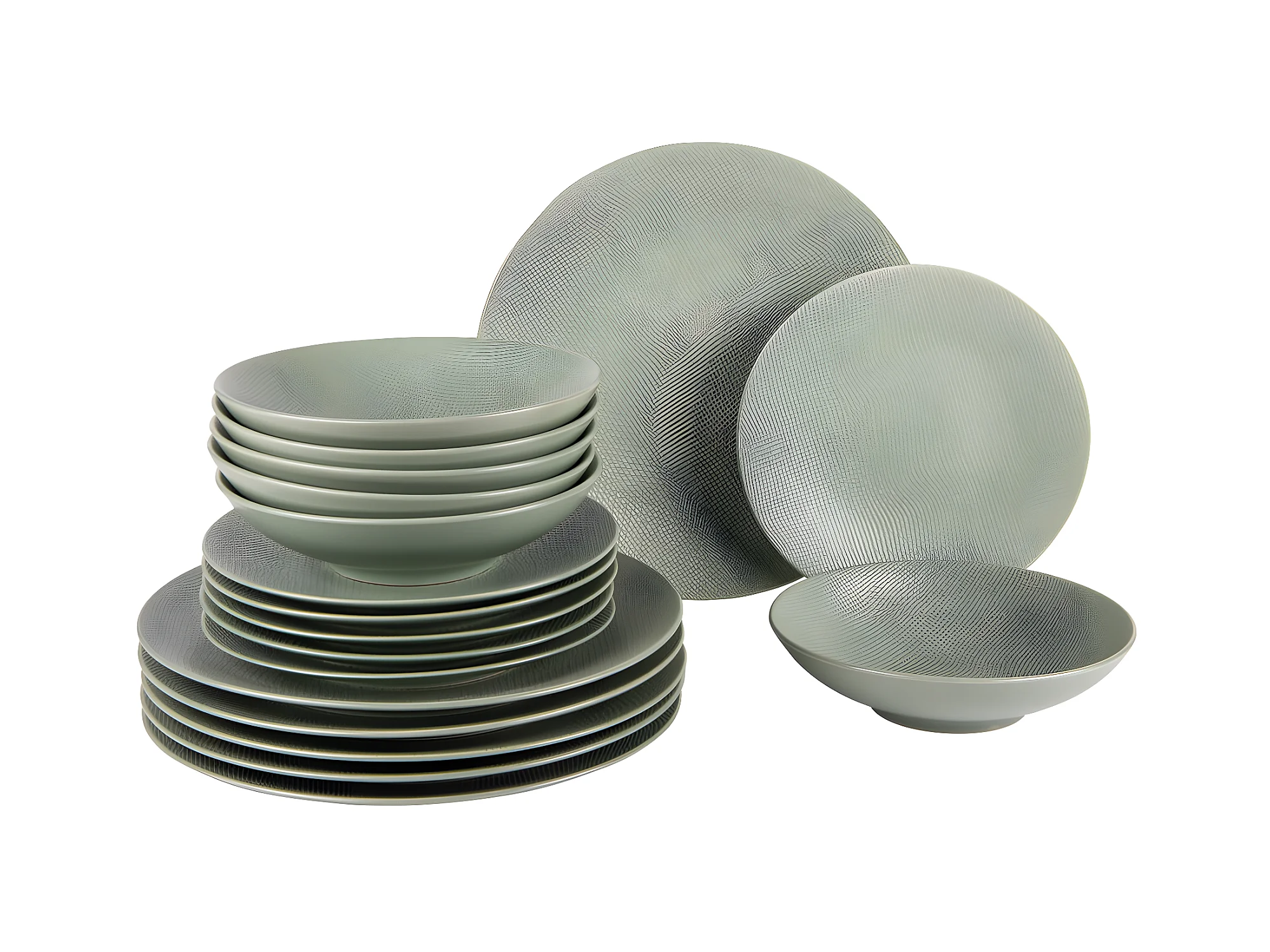 Service d'assiettes Vésuvio Vert Sauge 18 pièces