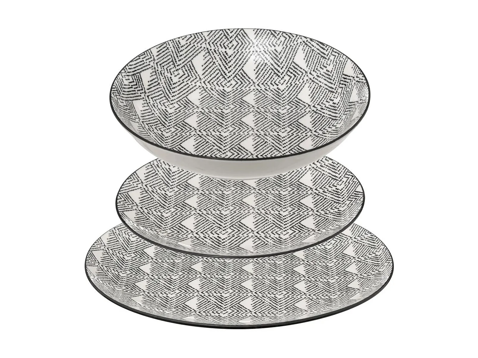 Service de Table 18 Pièces "Bohemia Etnic" 27cm Noir
