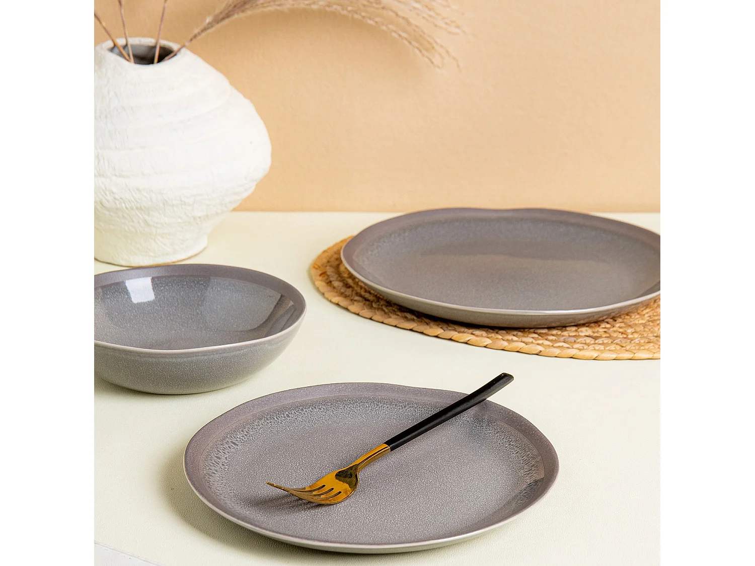 Service de table 18 pièces en grès à émail réactif - Gris