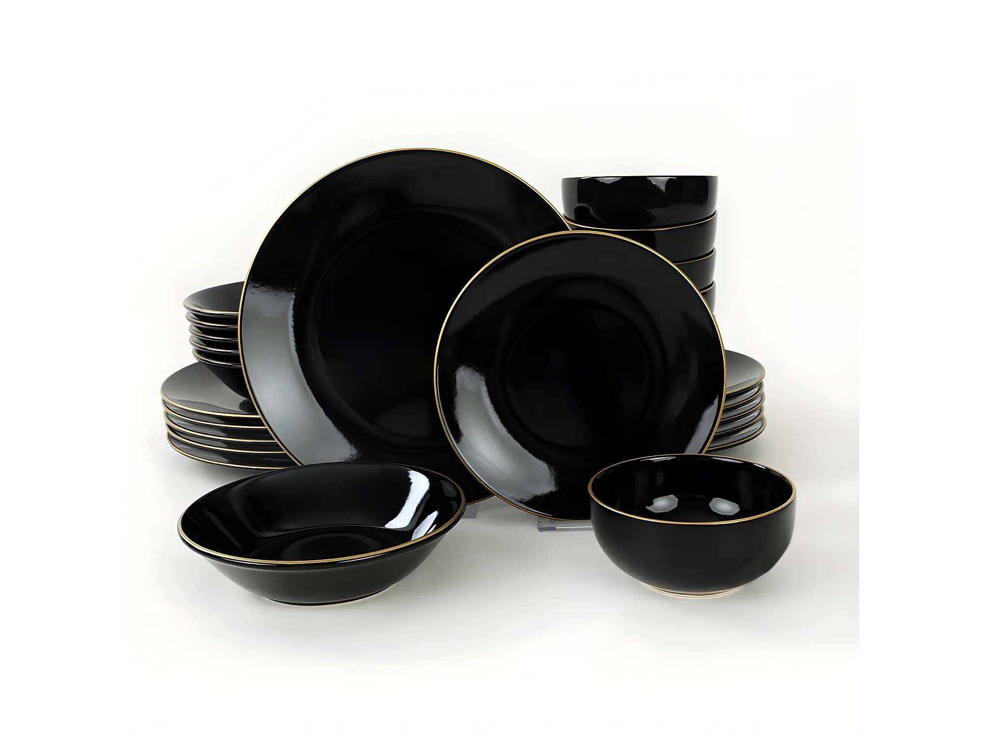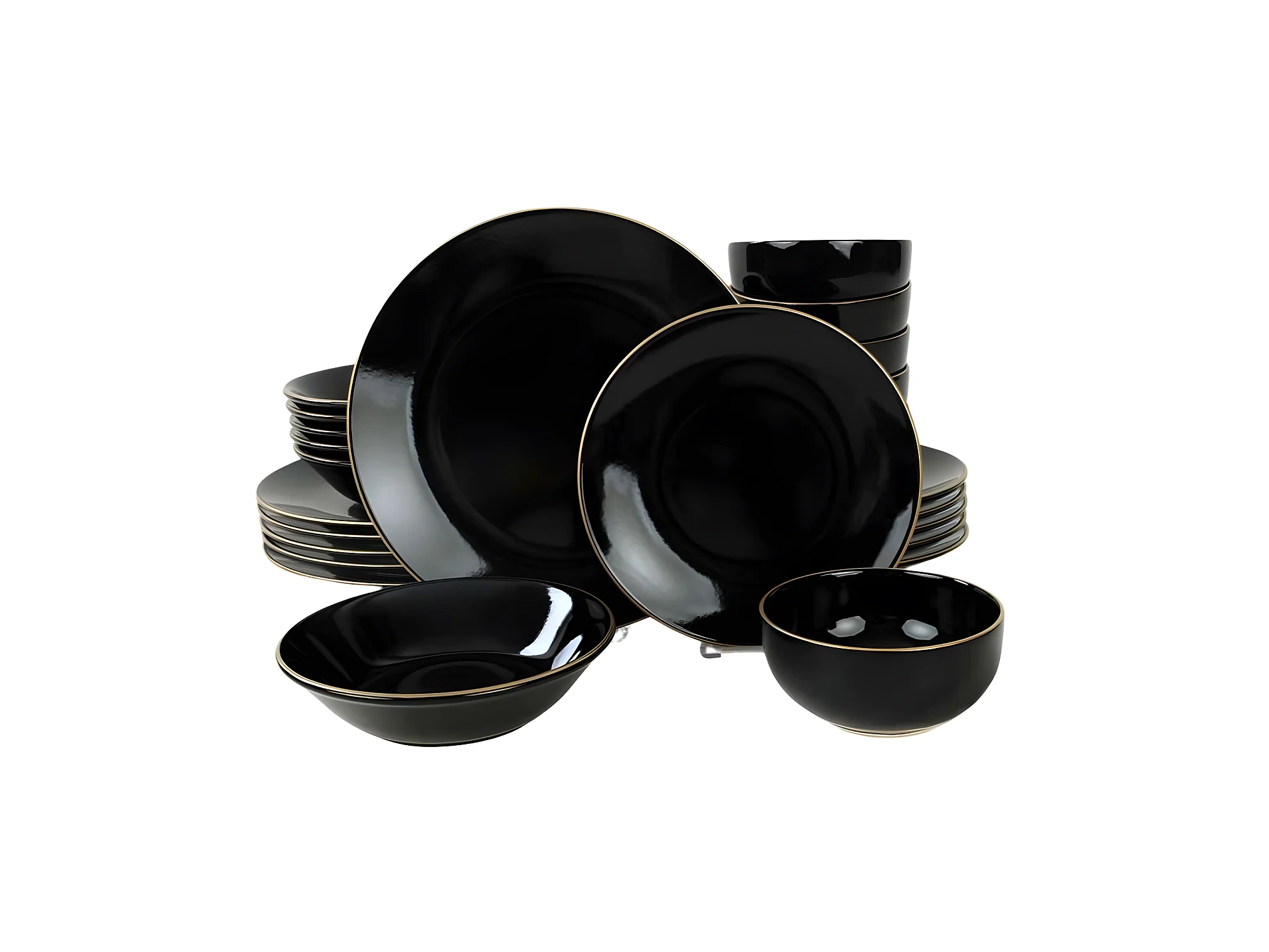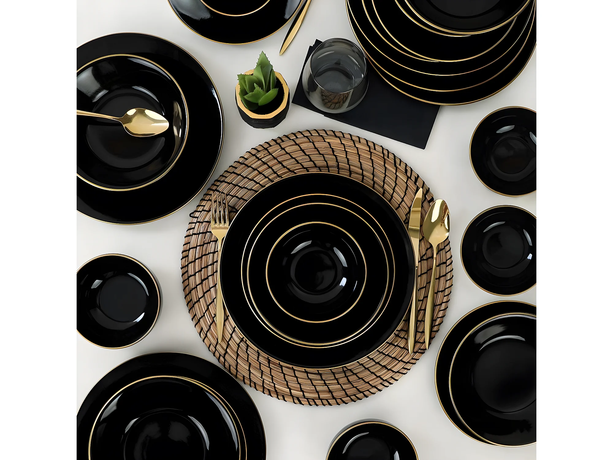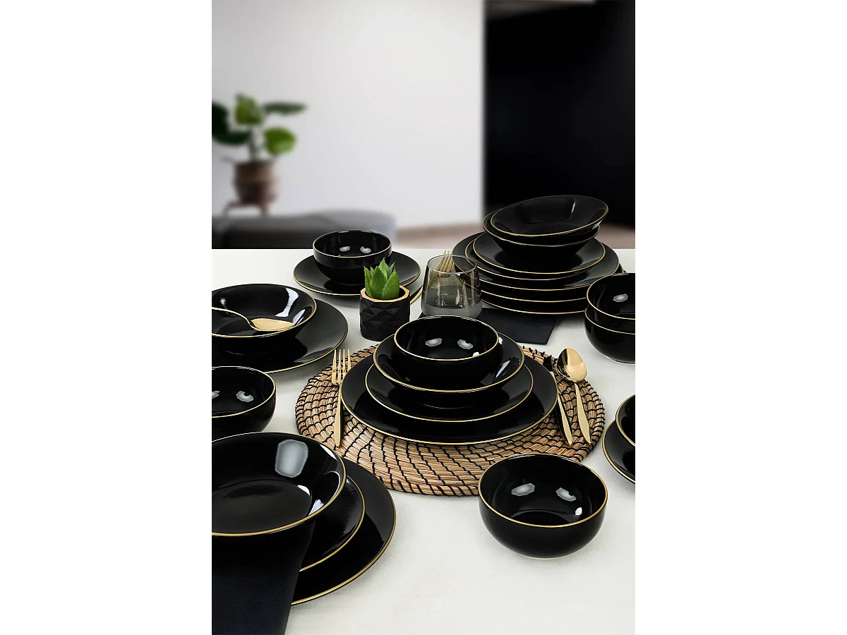 Service de table 24 pièces Erve Céramique Noir et lisère Or