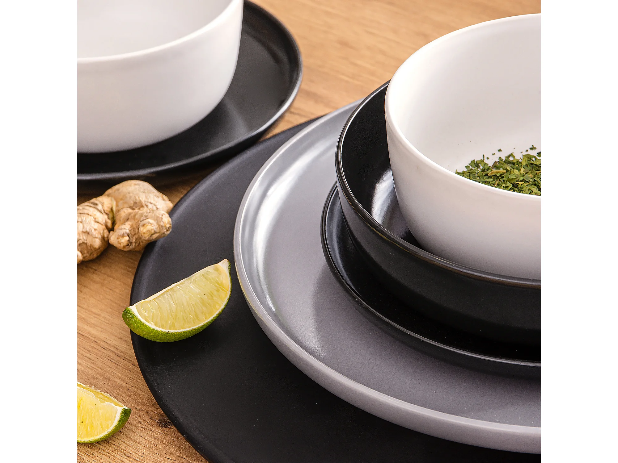 Service de table - Service vaisselle - avec Bol 18 pièces - Blanc, Noir, Gris - VICTO